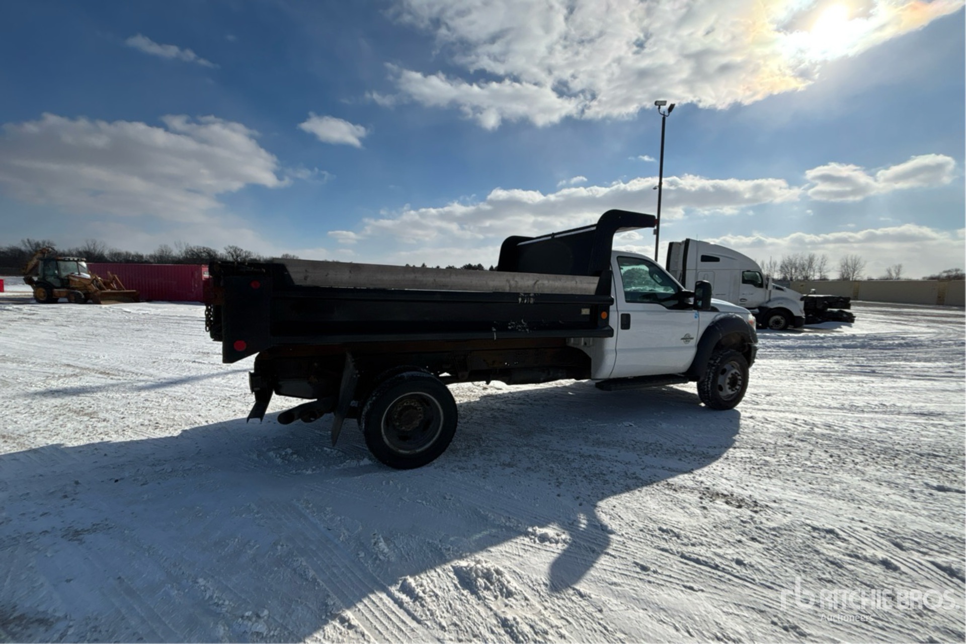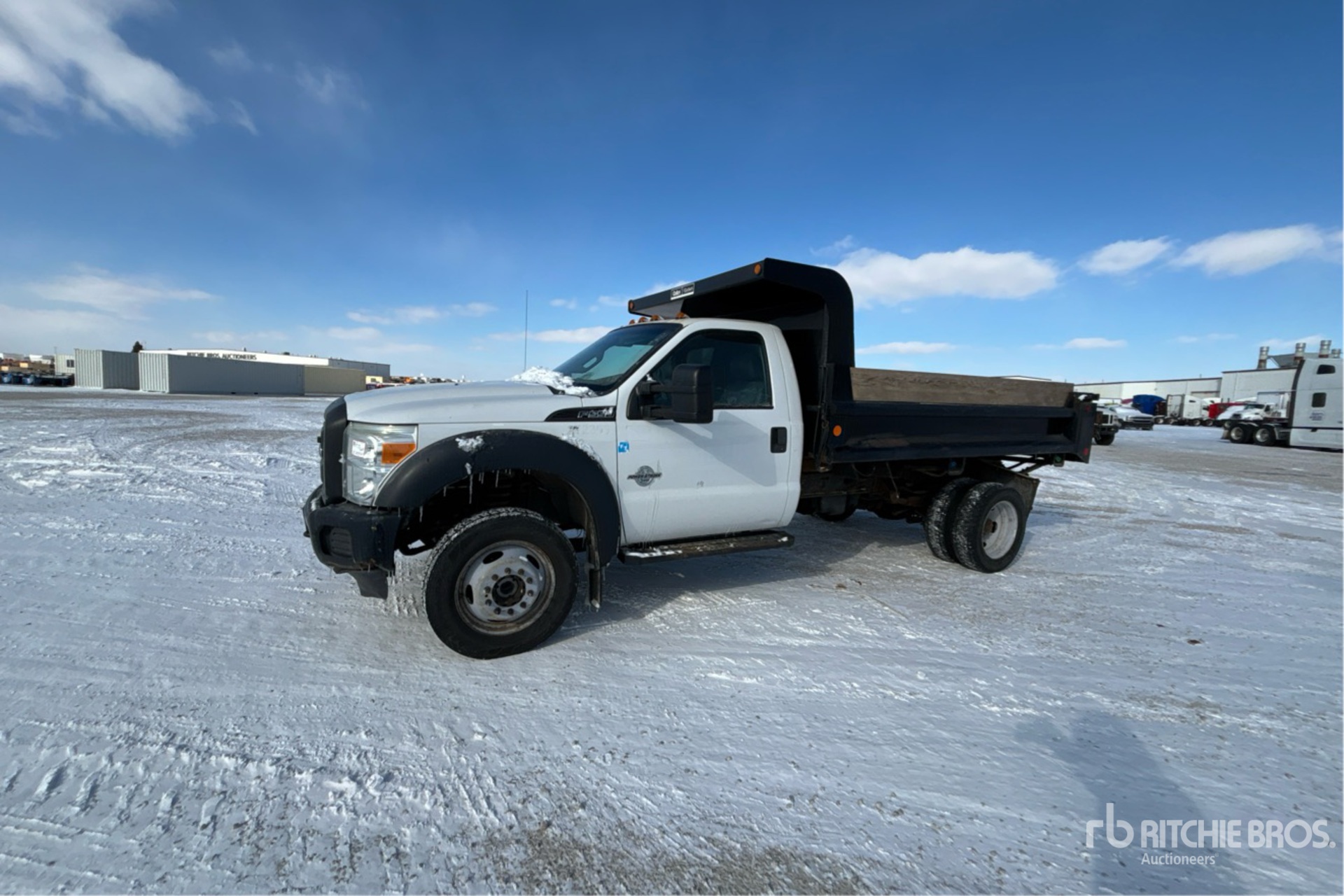Located in Lane 9 Spot 14, Ford PowerStroke V8 6.7 L Diesel 300 hp Engine, 2015 US EPA Label, 12182 Engine hrs, Automatic Transmission, 7000 lb Front Axle, 14706 lb Rears, 19500 lb GVWR, 225/70R19.5 Front Tires, 225/70R19.5 Rear Tires, Spring Suspension, 165 in Wheelbase, Champion 11 ft 0 in Long x 2 ft 0 in High Steel Body, Receiver Hitch