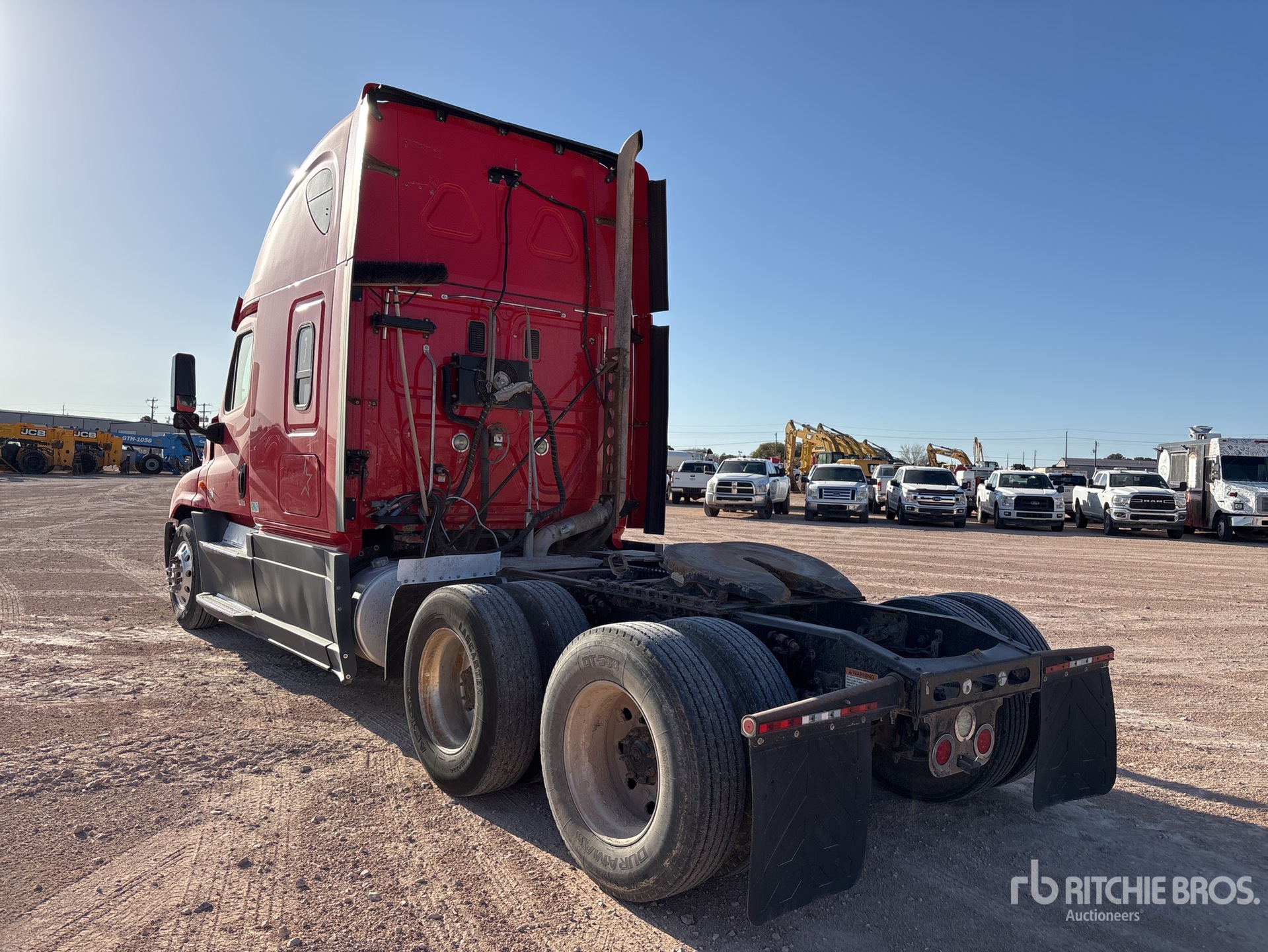 Detroit DD15 475 hp Engine, 2014 US EPA Label, Eaton Fuller FR-15210B 10-Speed Manual Transmission, 12500 lb Front Axle, 40000 lb Rears, 52500 lb GVWR, Engine Brake, 70 in High Rise Sleeper Cab, Bunk Beds, 230 in Wheelbase, Air Suspension, Aluminum Wheels, 295/75R22.5, Air Sliding 5th Wheel, Dual Fuel Tanks