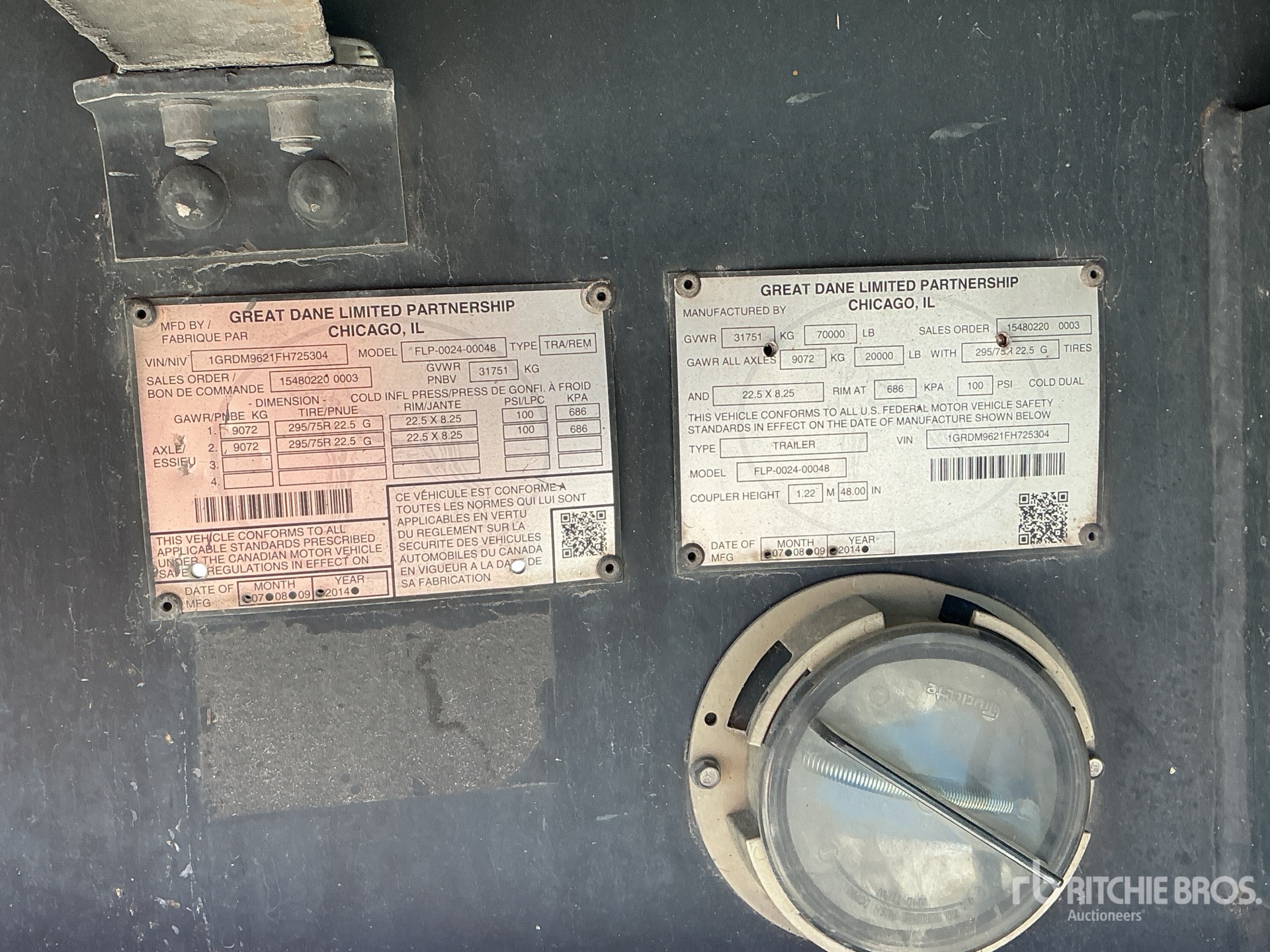 Air Ride Suspension, 102 in Deck Width, 102 in Overall Width, Bulkhead, Aluminum w/Wood Strips Flooring, 295/80R22.5 Tires, 70000 lb GVWR