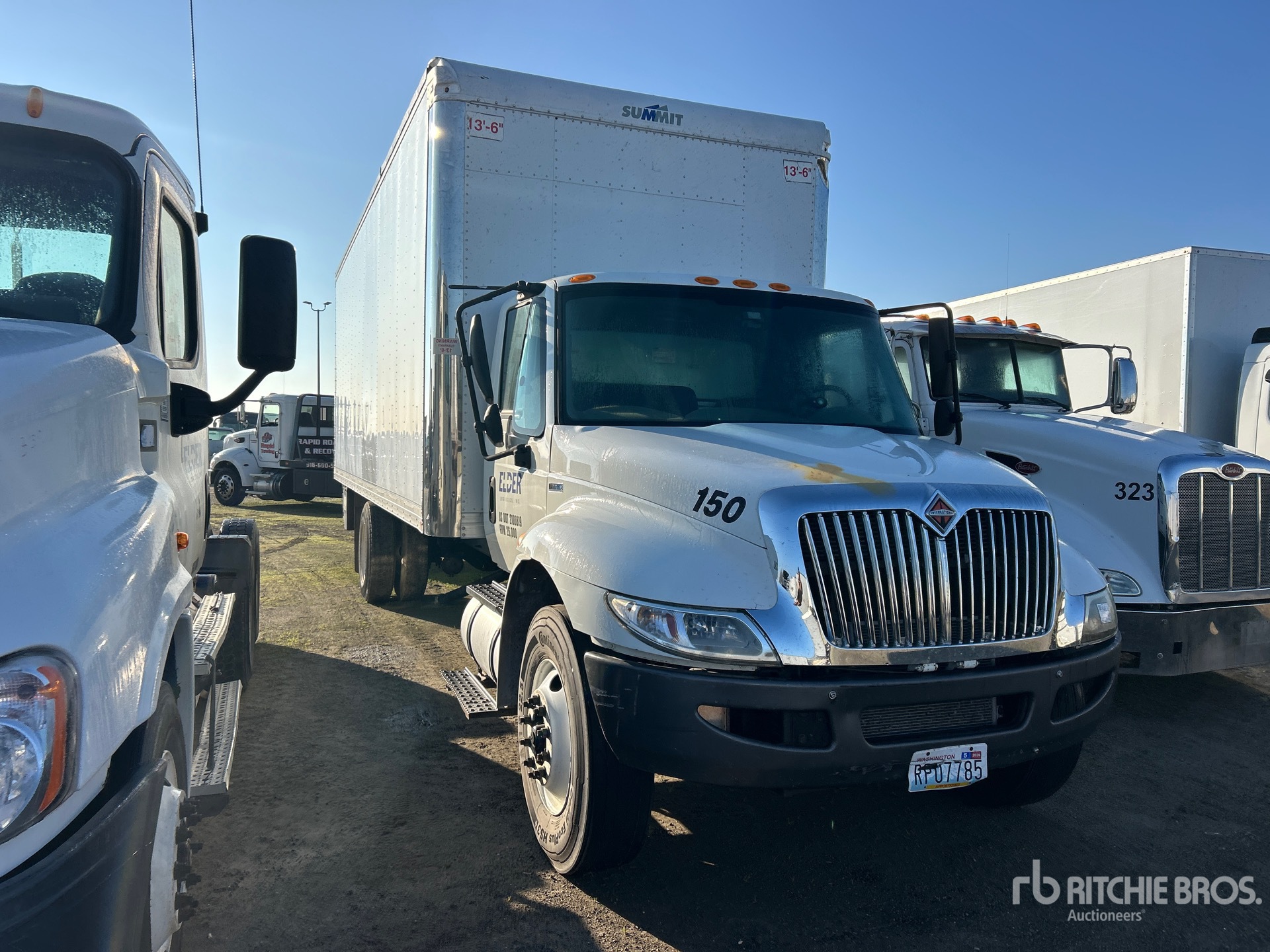 Navistar 7.6 L Diesel 215 hp Engine, 2014 US EPA Label, Eaton Fuller Automatic Transmission, 10000 lb Front Axle, 17500 lb Rears, 25999 lb GVWR, 11R22.5, Spring Suspension, 253 in Wheelbase, Summit 26 ft x 102 in Wide x 102 in High Body, Liftgate