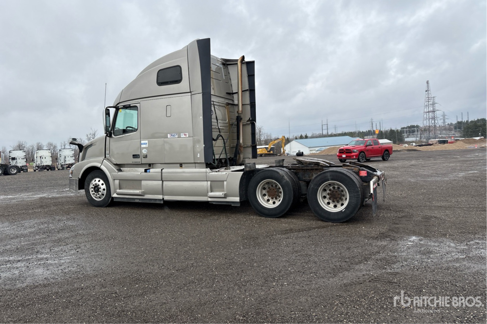 Volvo D13 455 hp Engine, 2014 US EPA Label, Volvo ATO2612D 12-Speed Automated Transmission, 13200 lb Front Axle, 40000 lb Rears, 53200 lb GVWR, Double Differential Locks, 70 in High Rise Sleeper Cab, Bunk Beds, 222 in Wheelbase, Air Suspension, Aluminum Wheels, 11R22.5 Front Tires, 11R22.5 Rear Tires, Air Sliding 5th Wheel