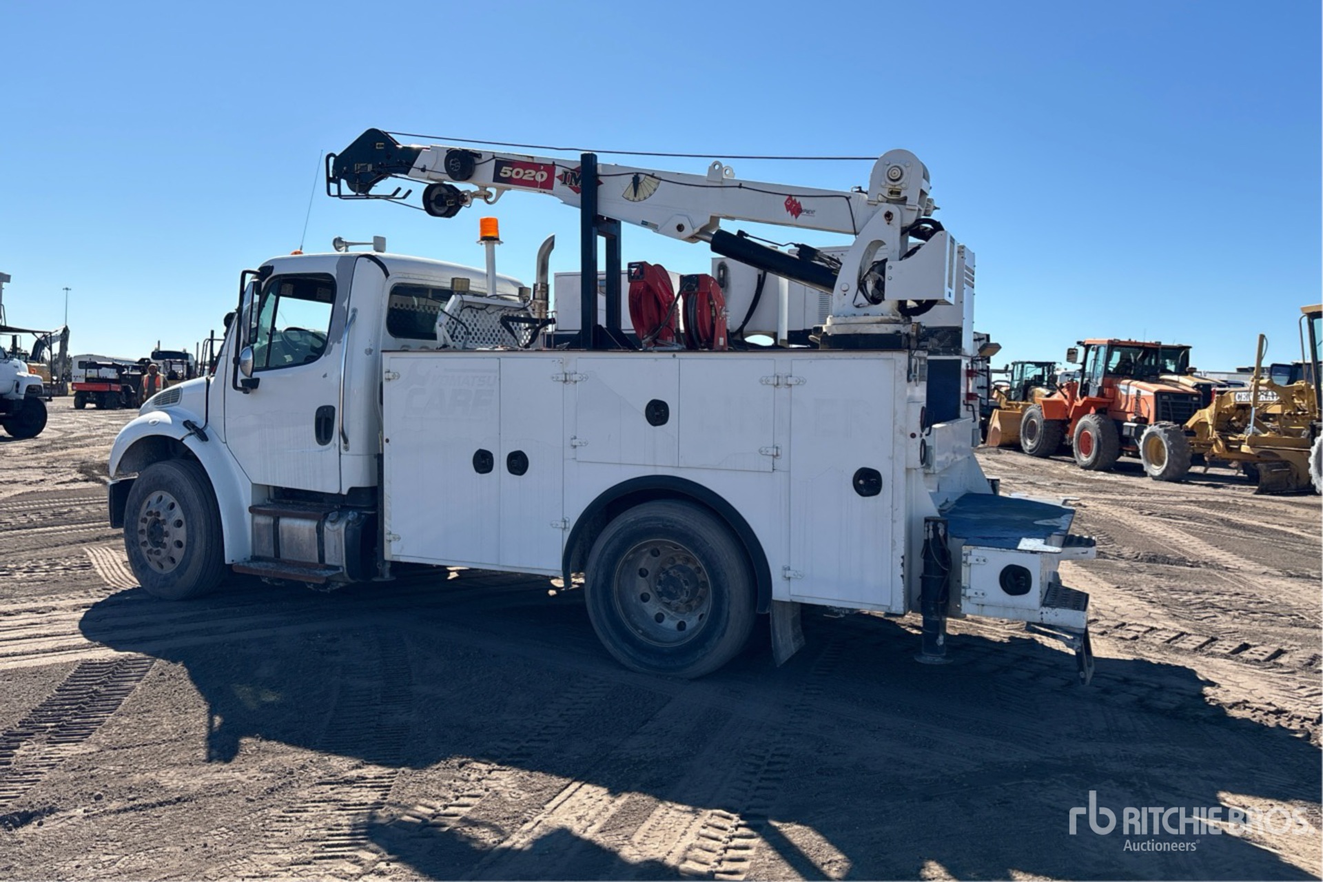 Cummins ISB Diesel 240 hp Engine, Requires Diesel Exhaust Fluid, Allison 2500 Automatic Transmission, 8000 lb Front Axle, 17500 lb Rears, 25000 lb GVWR, 295/75R22.5 Front Tires, 295/75R22.5 Rear Tires, 10 ft 9 in Body, Hydraulic Stabilizers, IOWA MOLD TOOLING CO 5020S2 8600 lb 1 Section Hydraulic Crane, Miller 6 kVA Generator Set