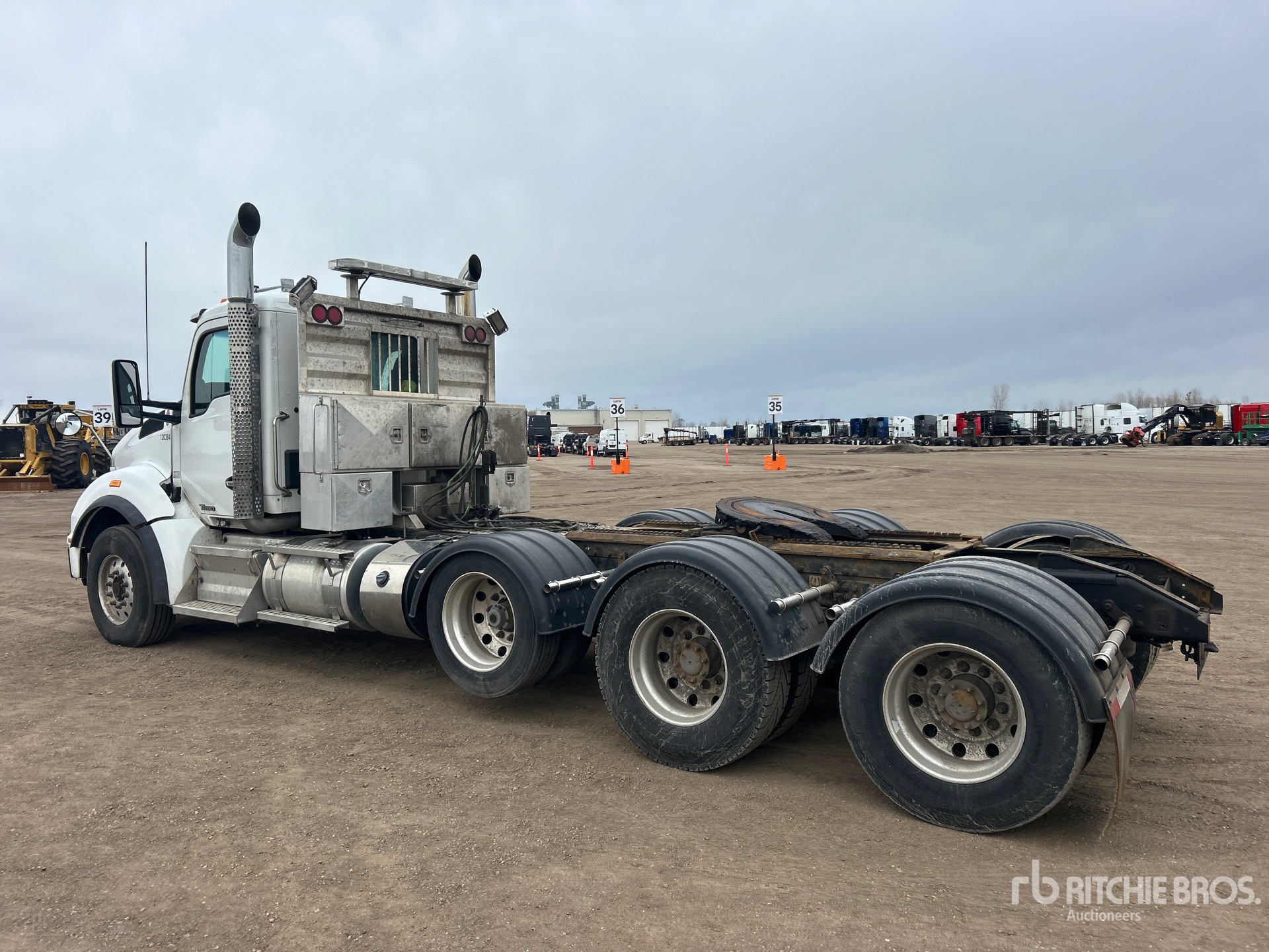 Cummins ISX15 600 hp Engine, 2015 US EPA Label, Eaton Fuller RTLO-16918B 18-Speed Manual, 18180 lb Front Axle, 46000 lb Rears, 73000 lb GVWR, 246 in Wheelbase, Air Suspension, Air Lift Pusher Axle, Aluminum Wheels, 315/80R22.5 Front Tires, 11R22.5 Rear Tires, Double Frame, Wet Kit, Air Sliding 5th Wheel, Dual Fuel Tanks, Headache Rack, Lowboy Ramps