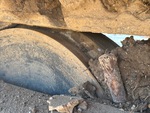 Minor dry rot. Hose running to bucket cylinder is damaged, but operational.