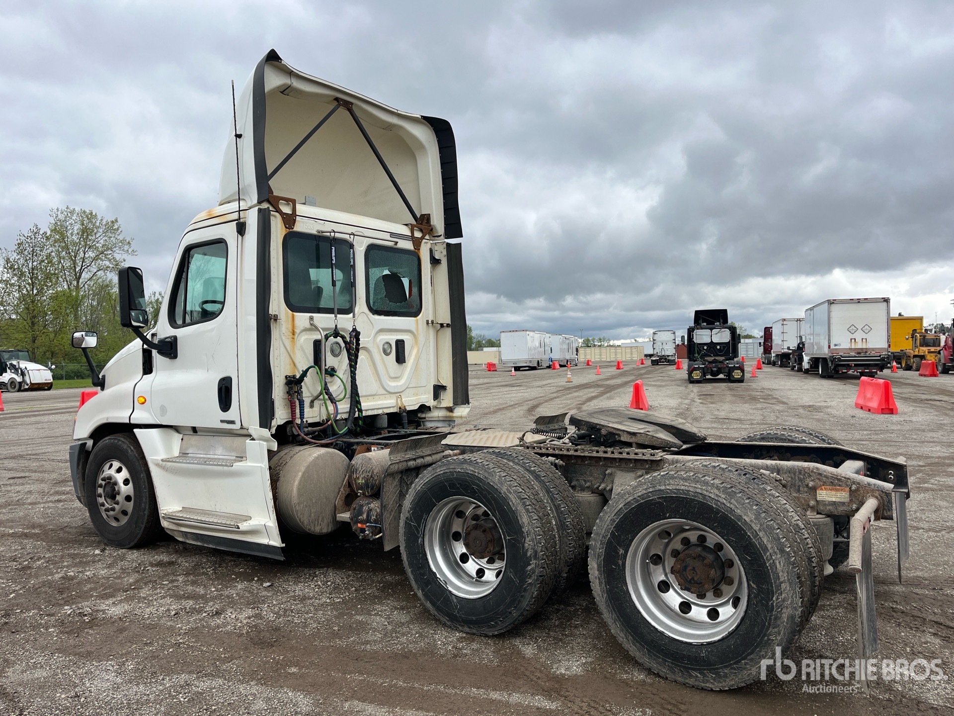 Located in Lane 23 Spot 14, Detroit DD15 455 hp Engine, 2016 US EPA Label, Detroit DT12-OA-1750 HD 12-Speed 12000 lb Front Axle, 40000 lb Rears, 52000 lb GVWR, Engine Brake, 178 in Wheelbase, Air Suspension, Aluminum Wheels, 11R22.5 Front Tires, 11R22.5 Rear Tires, Air Sliding 5th Wheel, Dual Fuel Tanks