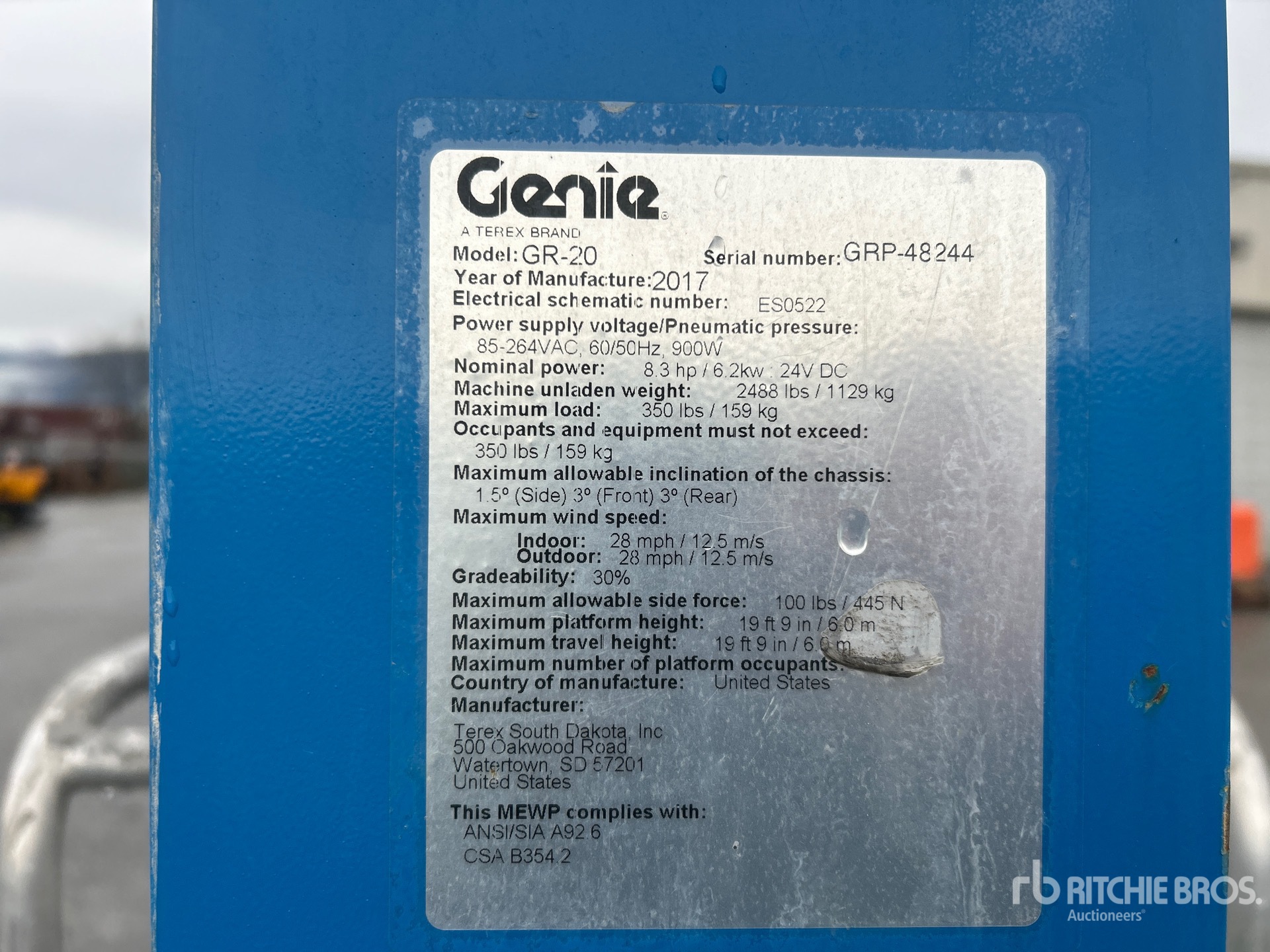 19 ft 9 in Max Platform Height, 350 lb Max Weight Capacity, Power to Platform, Solid Non-Marking Tires, Upper Control Box