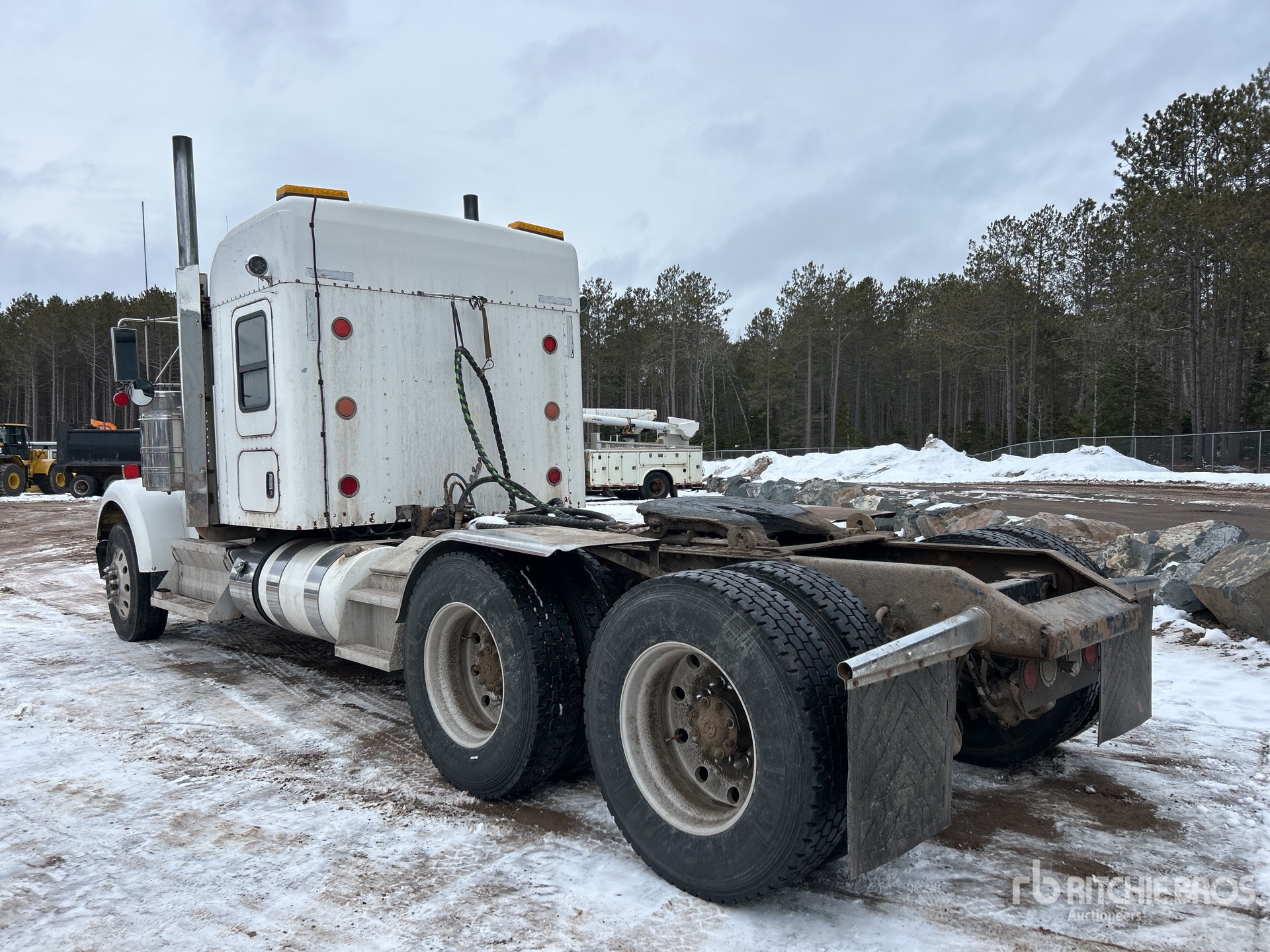Paccar MX-13 485 hp Engine, 2013 US EPA Label, 20730 Engine hrs, Eaton Fuller RTLO-18918B 18-Speed Manual, 6496 kg Front Axle, 20866 kg Rears, 27361 kg GVWR, Engine Brake, Double Differential Locks, 50 in Mid Roof Sleeper Cab, 244 in Wheelbase, 8-Bag Air Suspension, Aluminum Wheels, 11R24.5, Wet Kit, Dual Fuel Tanks