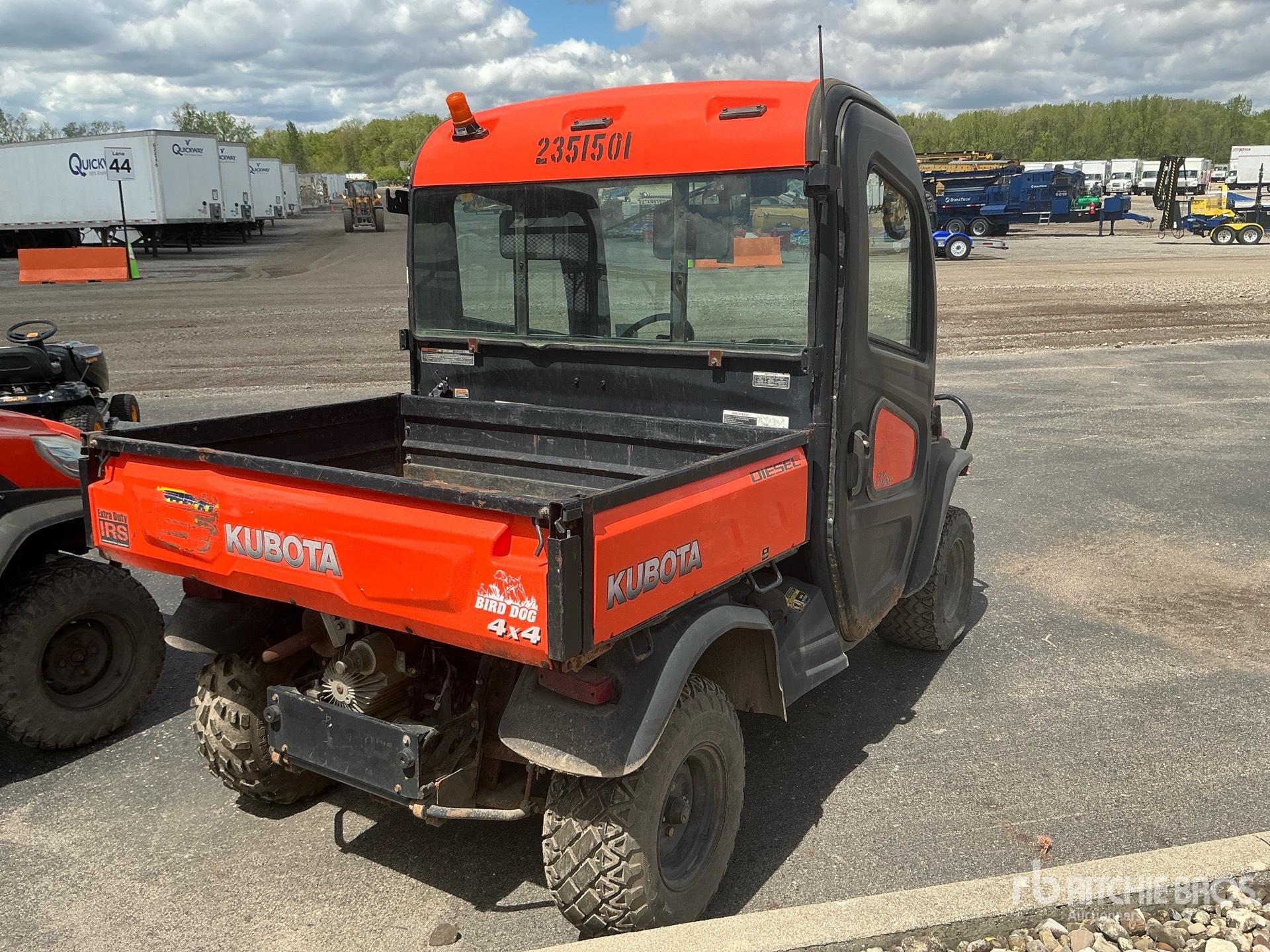 Enclosed Cab, 2 Passenger, Windshield, Locking Front Differential, Brush Guard, Hitch Receiver, Hydraulic Dump Bed