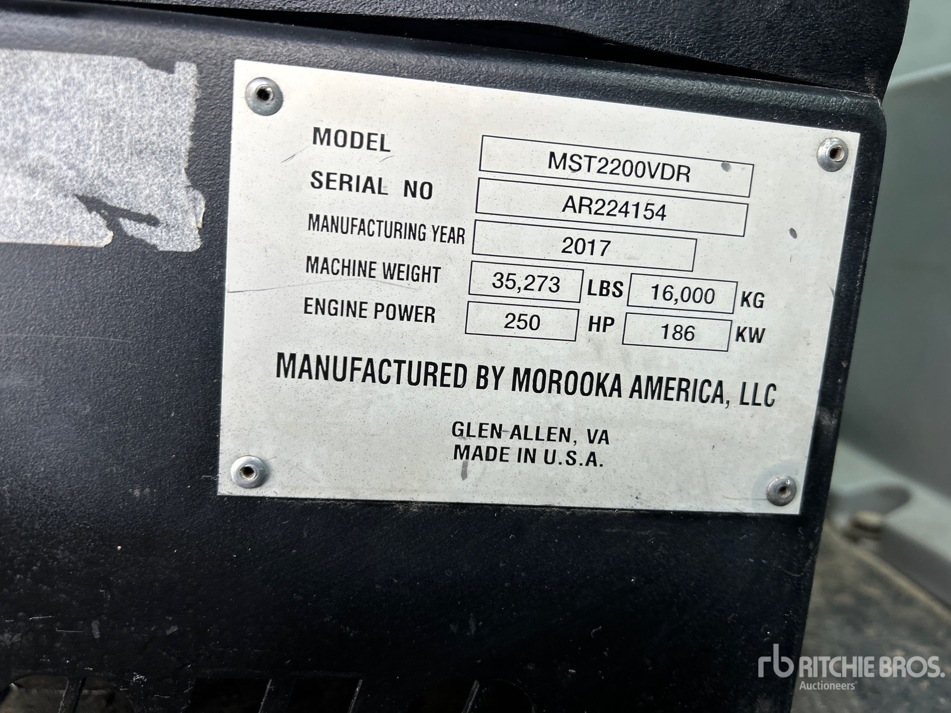 La información detallada del equipo tiene un ámbito limitado y Ritchie Bros. Auctioneers no ha inspeccionado ningún aspecto ni componente del equipo distinto de los expuestos expresamente aquí. A menos que se indique expresamente, no realizamos declaraciones ni ofrecemos garantías, expresas o implícitas, con respecto al equipo o a sus componentes, incluidas, entre otras, representaciones o garantías relativas a la funcionalidad, la conformidad o el cumplimiento de normativas de seguridad de autoridades u órganos reguladores competentes, así como tampoco sobre la aptitud para cualquier propósito particular o para fines de comercialización. Te aconsejamos que realices tu propia inspección detallada del equipo antes de la subasta.