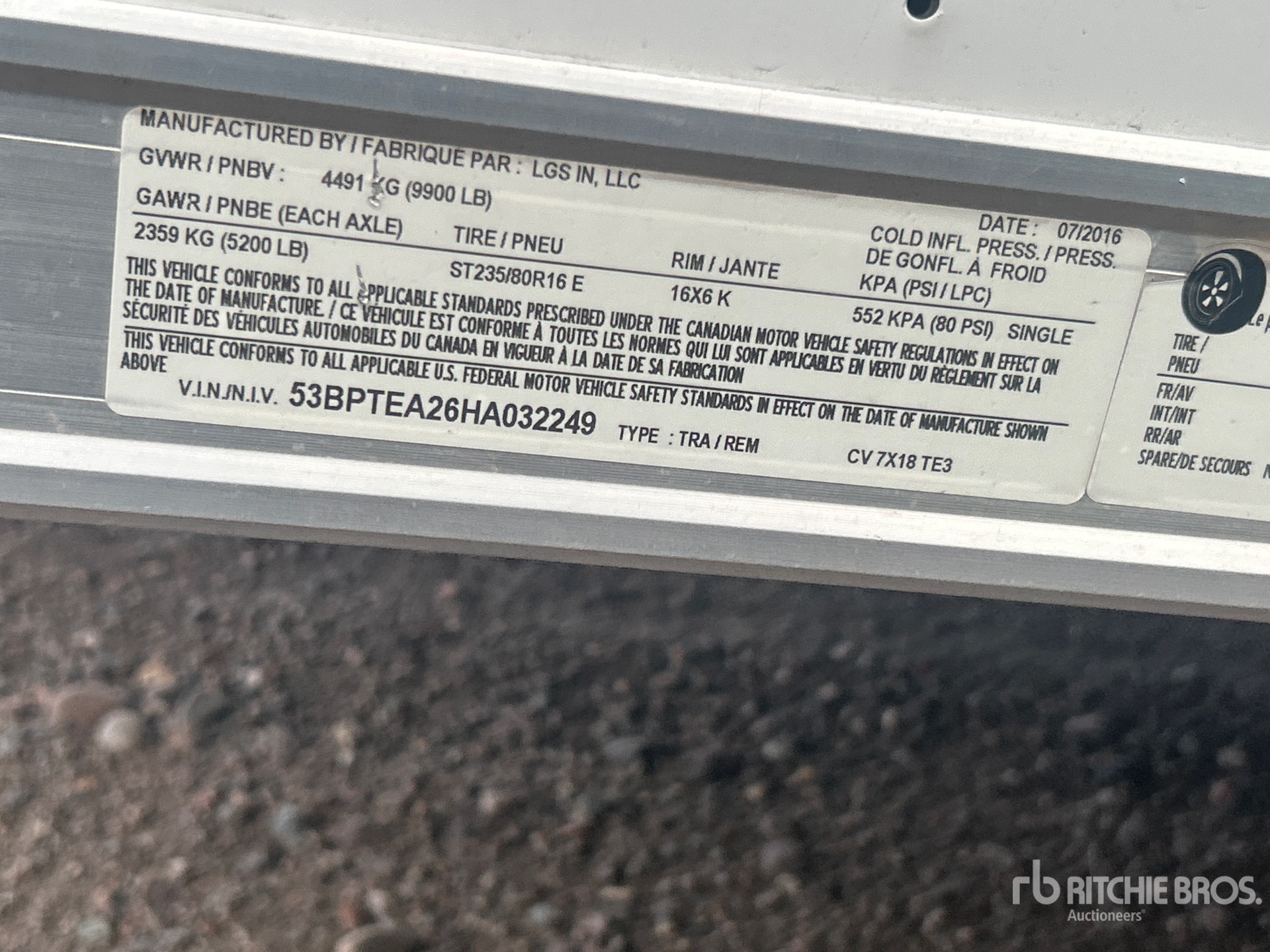 Ball Hitch, Torsion Axle, Electric Brakes, 80 in Deck Width, 102 in Overall Width, Ramp, Side Door, 235/80R16 Tires, 9900 lb GVWR
