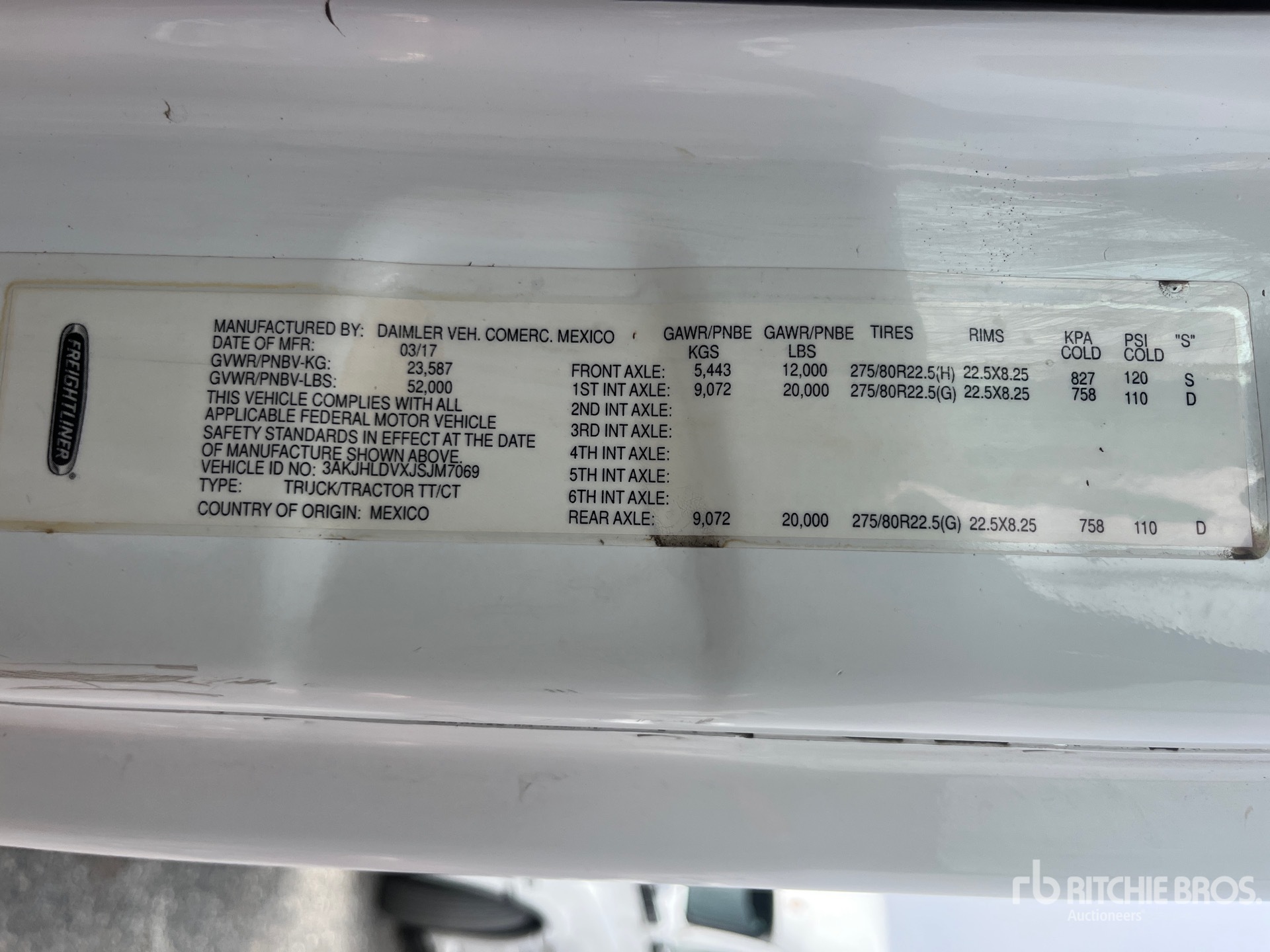 Located in Lane 31 Spot 38, Detroit 525 hp Engine, 2017 US EPA Label, 19088 Engine hrs, Detroit DT12-1650-OH1 12-Speed Automated Transmission, 12000 lb Front Axle, 40000 lb Rears, 52000 lb GVWR, 190 in Wheelbase, Air Suspension, Aluminum Outer Wheels, 11R22.5, Air Sliding 5th Wheel, Dual Fuel Tanks