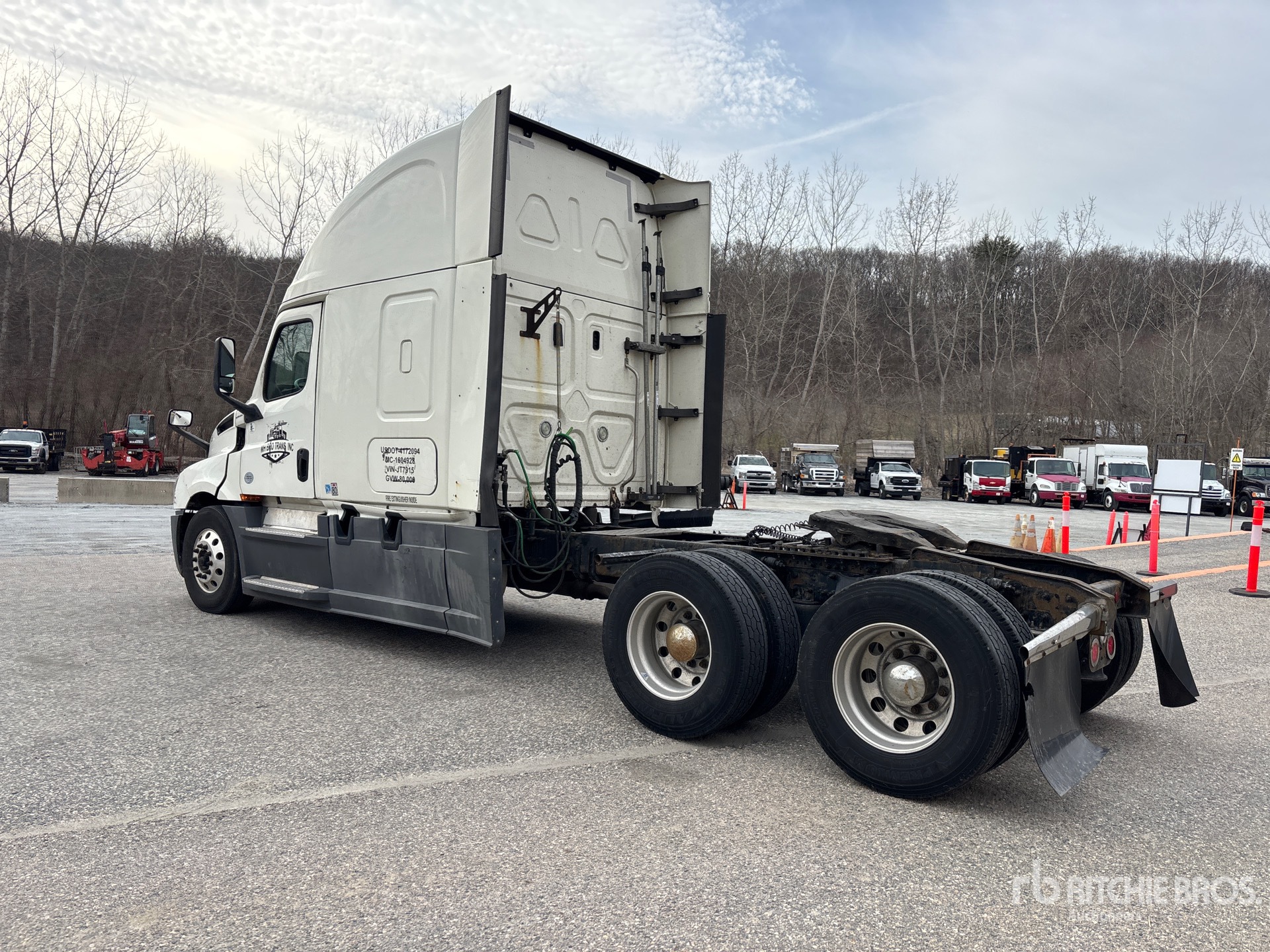 Detroit DD15 455 hp Engine, 2017 US EPA Label, 32121 Engine hrs, Detroit DT12-1550-DH1 12-Speed Automated Transmission, 12350 lb Front Axle, 40000 lb Rears, 52350 lb GVWR, Engine Brake, 72 in High Rise Sleeper Cab, Bunk Heater, 239 in Wheelbase, Air Suspension, Aluminum Wheels, 295/75R22.5, Air Sliding 5th Wheel, Dual Fuel Tanks