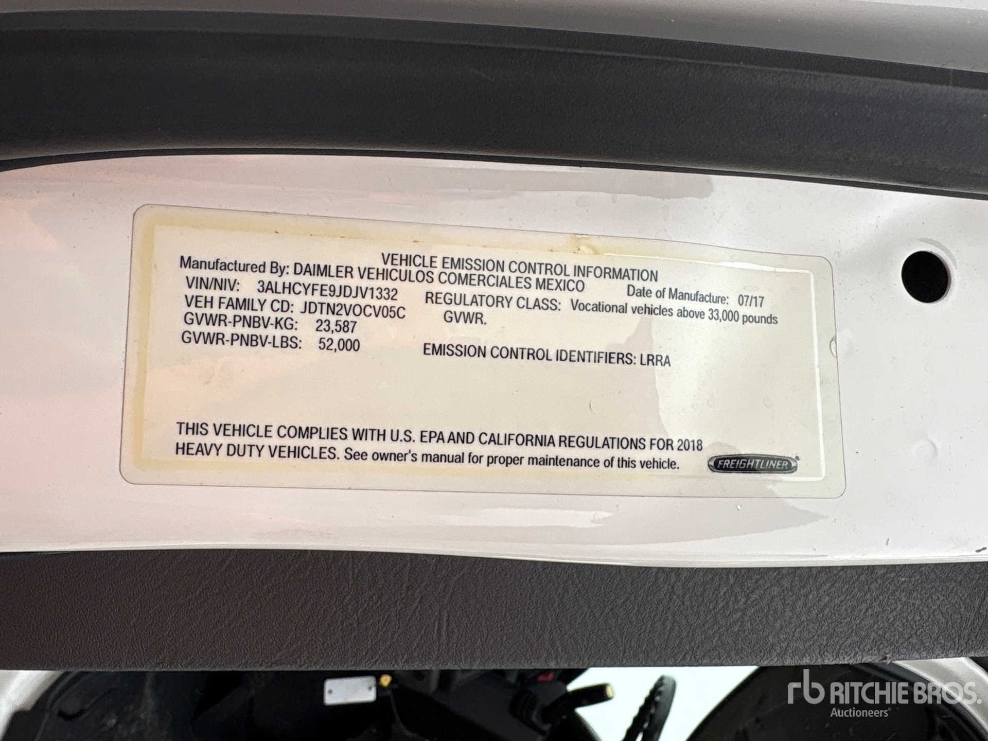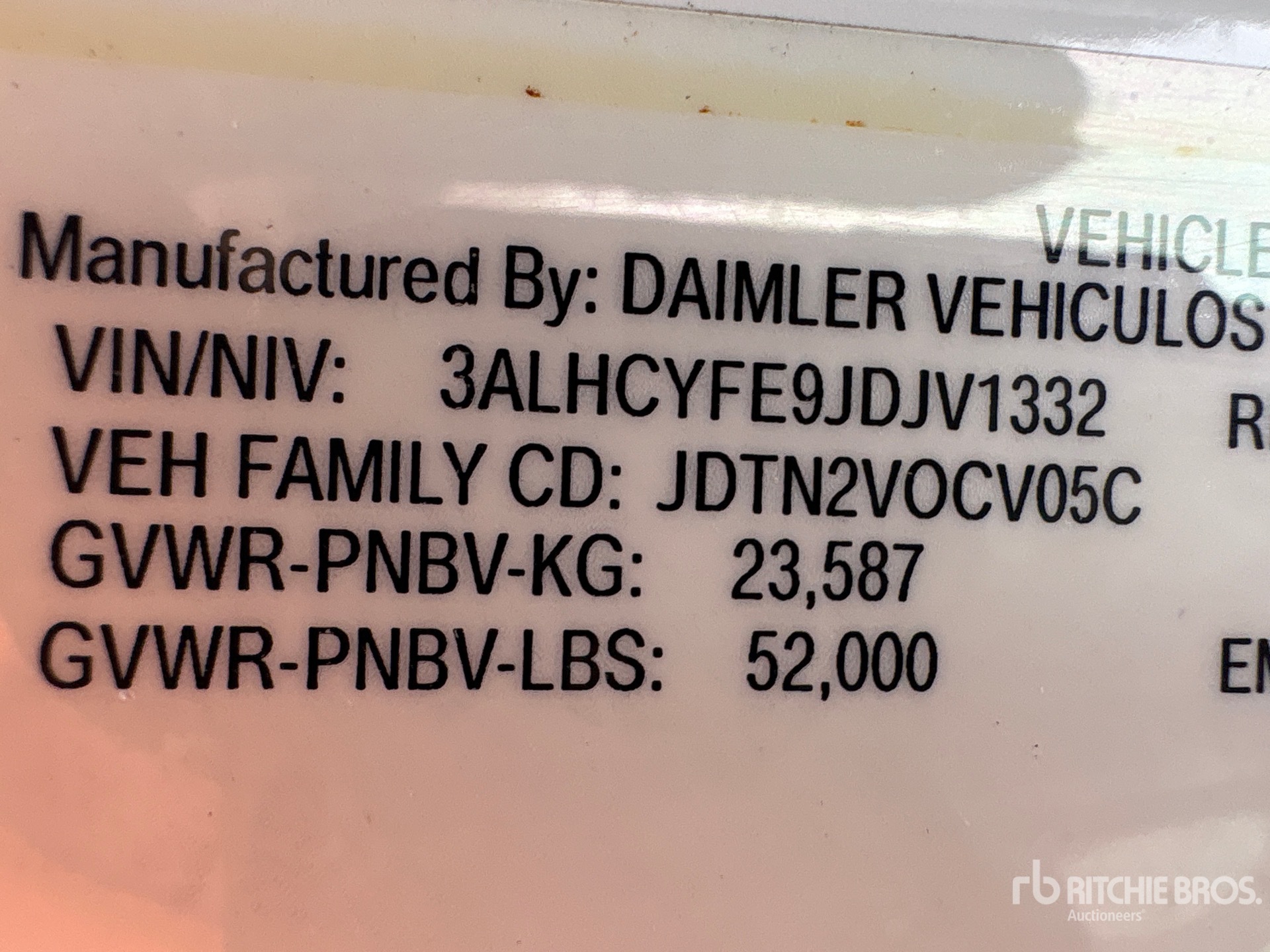 La información detallada del equipo tiene un ámbito limitado y Ritchie Bros. Auctioneers no ha inspeccionado ningún aspecto ni componente del equipo distinto de los expuestos expresamente aquí. A menos que se indique expresamente, no realizamos declaraciones ni ofrecemos garantías, expresas o implícitas, con respecto al equipo o a sus componentes, incluidas, entre otras, representaciones o garantías relativas a la funcionalidad, la conformidad o el cumplimiento de normativas de seguridad de autoridades u órganos reguladores competentes, así como tampoco sobre la aptitud para cualquier propósito particular o para fines de comercialización. Te aconsejamos que realices tu propia inspección detallada del equipo antes de la subasta.