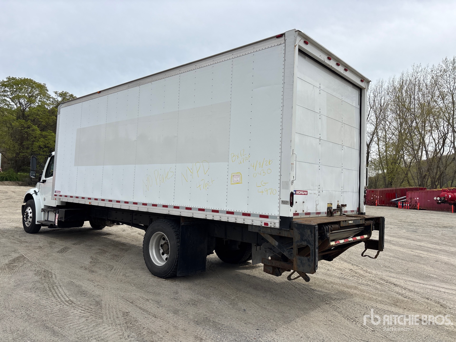 Cummins B6.7 6 Cylinder 6.7 L Diesel 240 hp Engine, 2017 US EPA Label, CARB Compliant, Requires Diesel Exhaust Fluid, 6351 Engine hrs, Allison 2500 Automatic Transmission, 10000 lb Front Axle, 17500 lb Rears, Detroit DA-RS-17.5 Drive Axles, 5.22:1 Axle Ratio, 26000 lb GVWR, Aluminum Wheels, 295/75R22.5, Airliner Air Ride Suspension, 255 in Wheelbase, Morgan 24 ft x 102 in Wide x 91 in High Body, Curbside Door, Liftgate