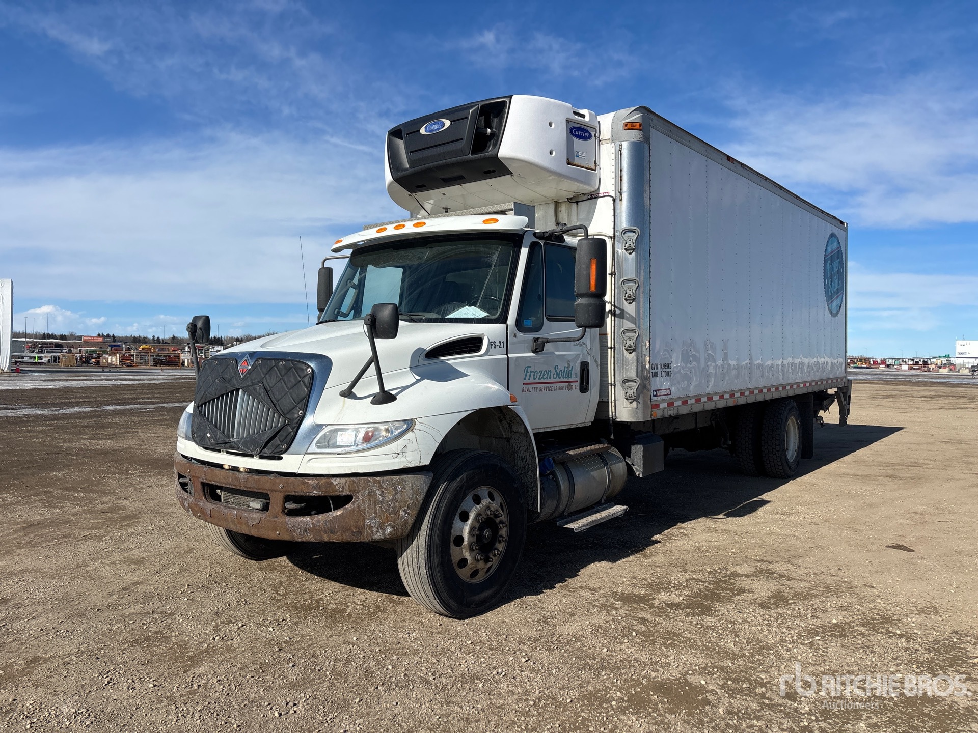Located in Lane 44 Spot 17, Cummins B6.7 220 V8 6.7 L Diesel 260 hp Engine, 2017 US EPA Label, 14351 Engine hrs, Automatic Transmission, Differential Lock, 12000 lb Front Axle, 21000 lb Rears, 33000 lb GVWR, Air Ride Cab, Aluminum Front Wheels, 11R22.5 Front Tires, 11R22.5 Rear Tires, Air Ride Suspension, 254 in Wheelbase, Carrier Reefer Unit, 4315 Reefer Total Hours:, Morgan 24 ft x 96 in Wide x 96 in High Body, Curbside Door, Walk-Up Ramp, Liftgate, Equipment-from-Frozen-Solid-Ltd