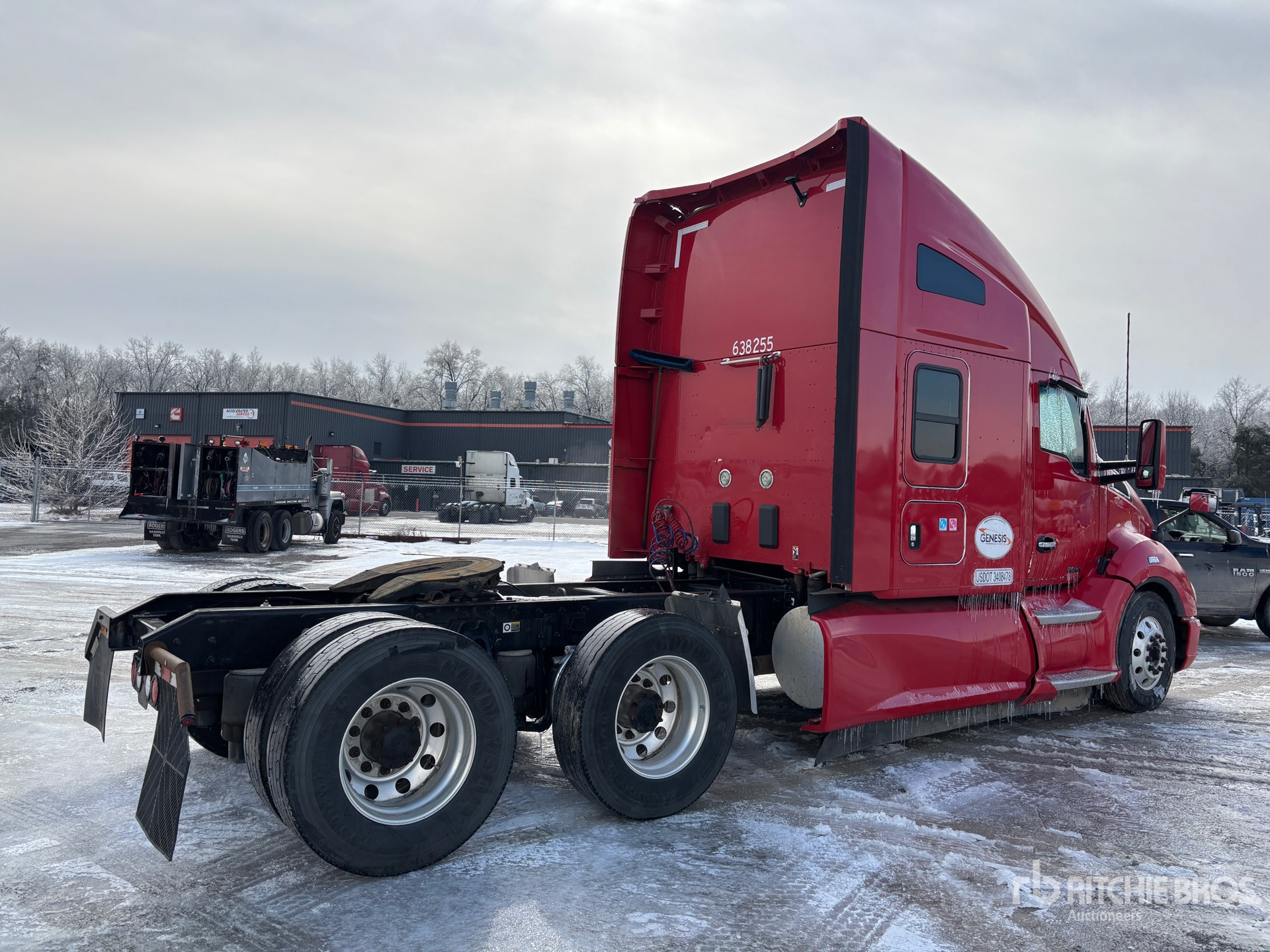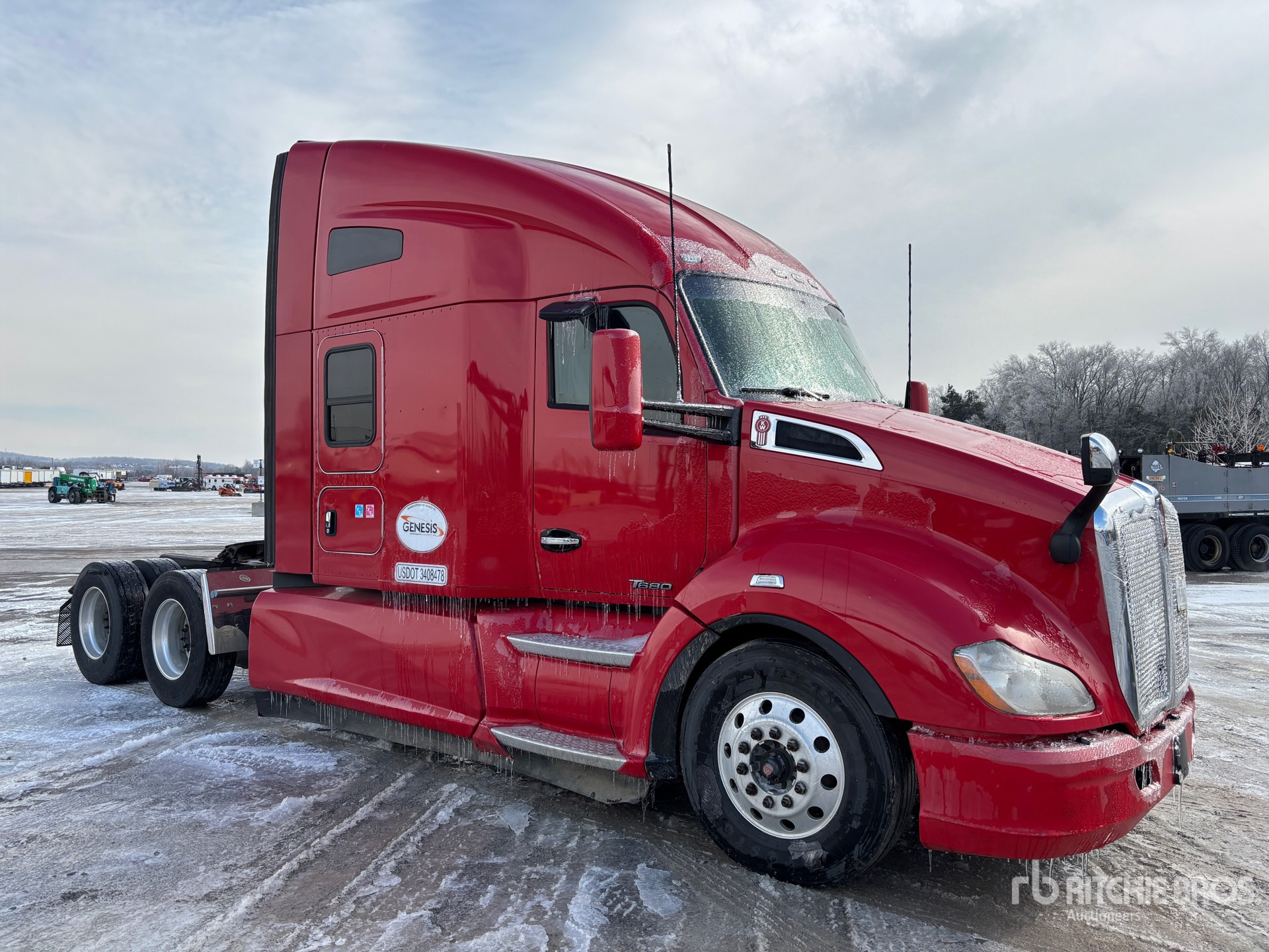 Paccar MX-13 455 hp Engine, 723649 Engine hrs, Eaton Fuller Automated Transmission, 13200 lb Front Axle, 40000 lb Rears, 53200 lb GVWR, Engine Brake, 72 in High Rise Sleeper Cab, 240 in Wheelbase, Air Suspension, Aluminum Wheels, 295/75R22.5, Dual Fuel Tanks