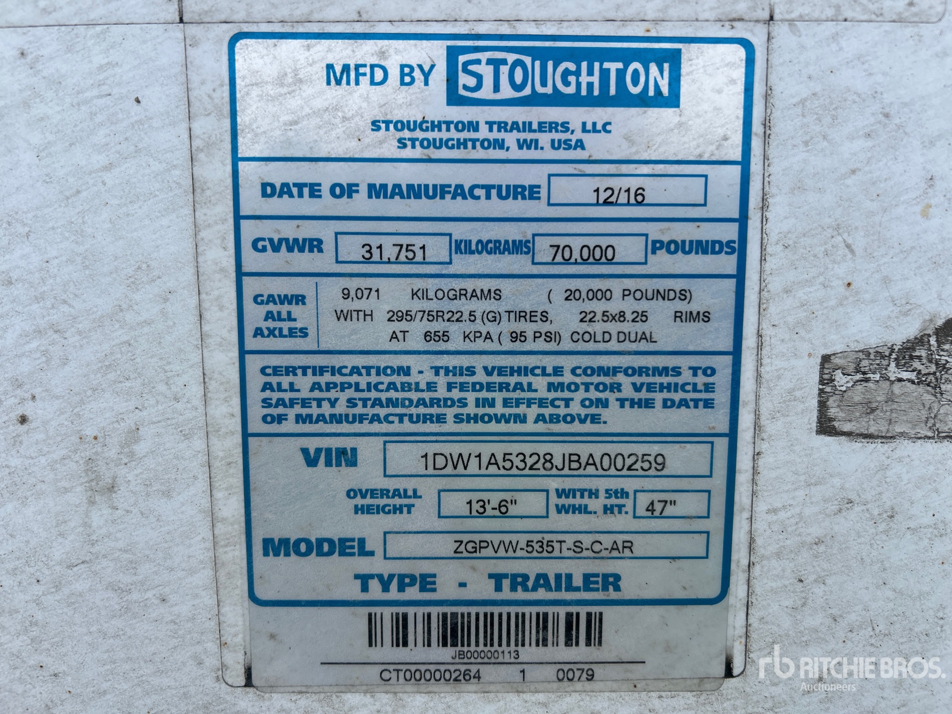 Air Ride Sliding Suspension, Hardwood Floor, Swing Door, 11R22.5 Tires, 70000 lb GVWR