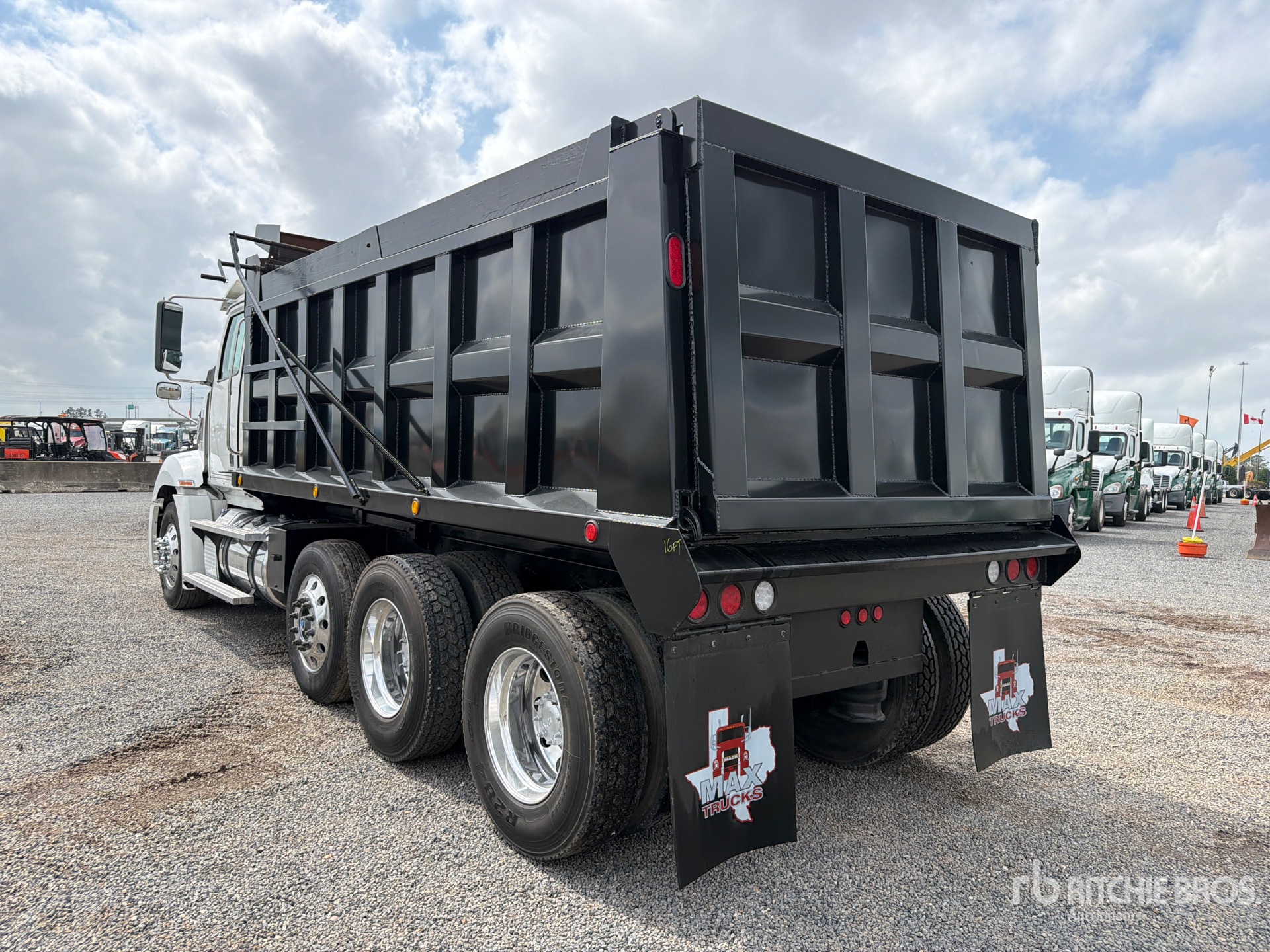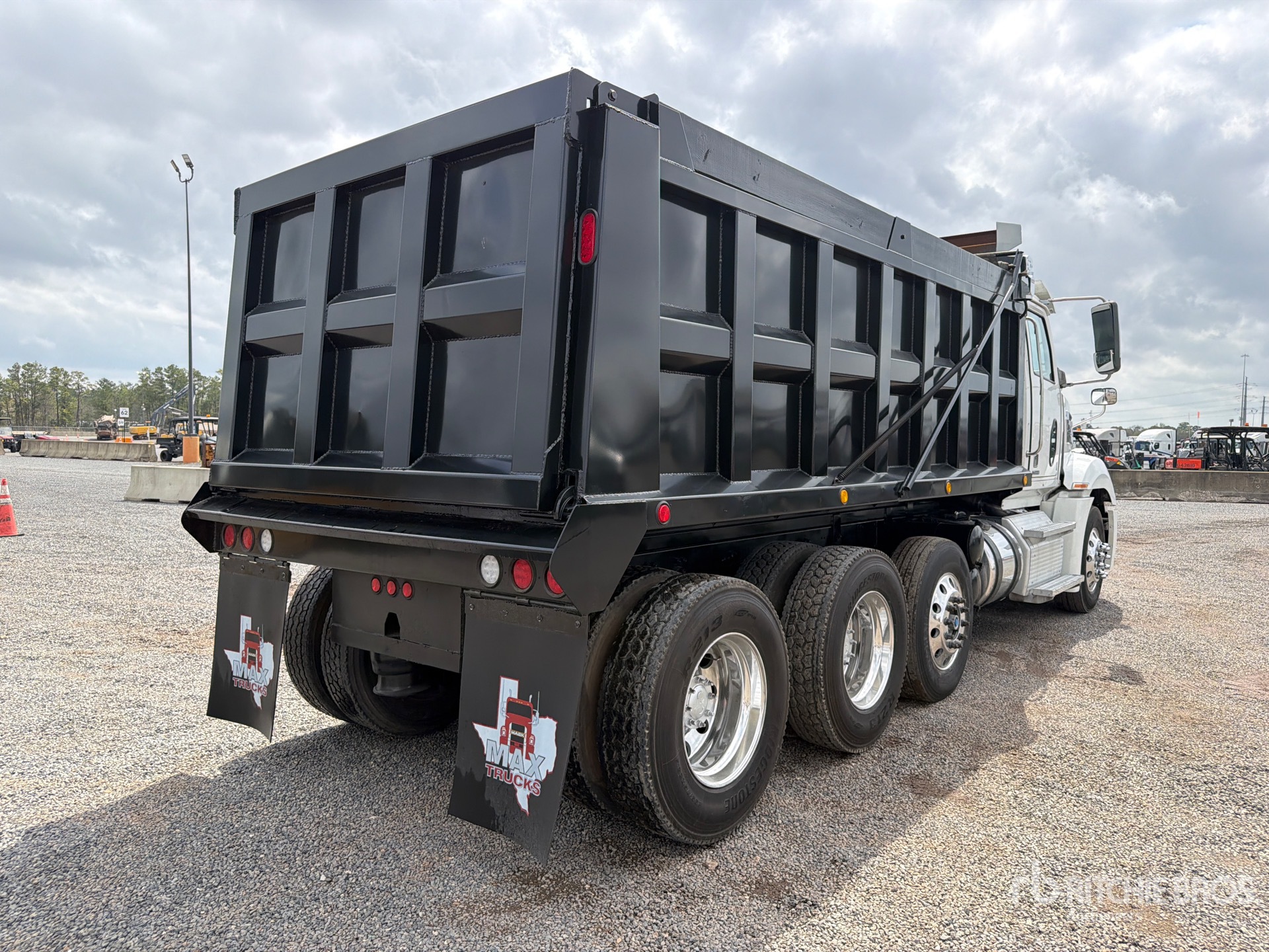 Detroit DD15 14.8 L Diesel Engine, Requires Diesel Exhaust Fluid, Engine Brake, Automated Transmission, Differential Lock, 12000 lb Front Axle, 40000 lb Rears, 52000 lb GVWR, Air Ride Cab, Aluminum Wheels, 295/75R22.5 Front Tires, 295/75R22.5 Rear Tires, Air Ride Suspension, 228 in Wheelbase, 16 ft Long x 4 ft 4 in High Steel Body, Manual Roll Tarp