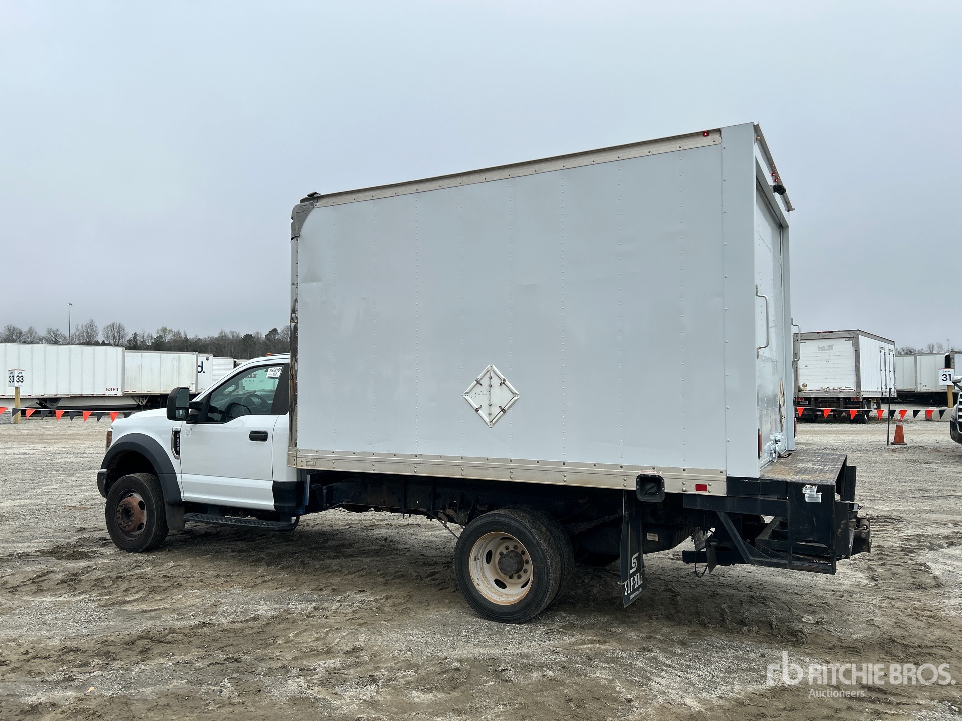 Ford V10 6.8 L Gasoline Engine, 2019 US EPA Label, 6942 Engine hrs, Automatic Transmission, 5200 lb Front Axle, 12880 lb Rears, 16500 lb GVWR, 225/70R19.5 Front Tires, 225/70R19.5 Rear Tires, Spring Suspension, 169 in Wheelbase, SUPREME 12 ft x 96 in Wide x 85 in High Body, Liftgate