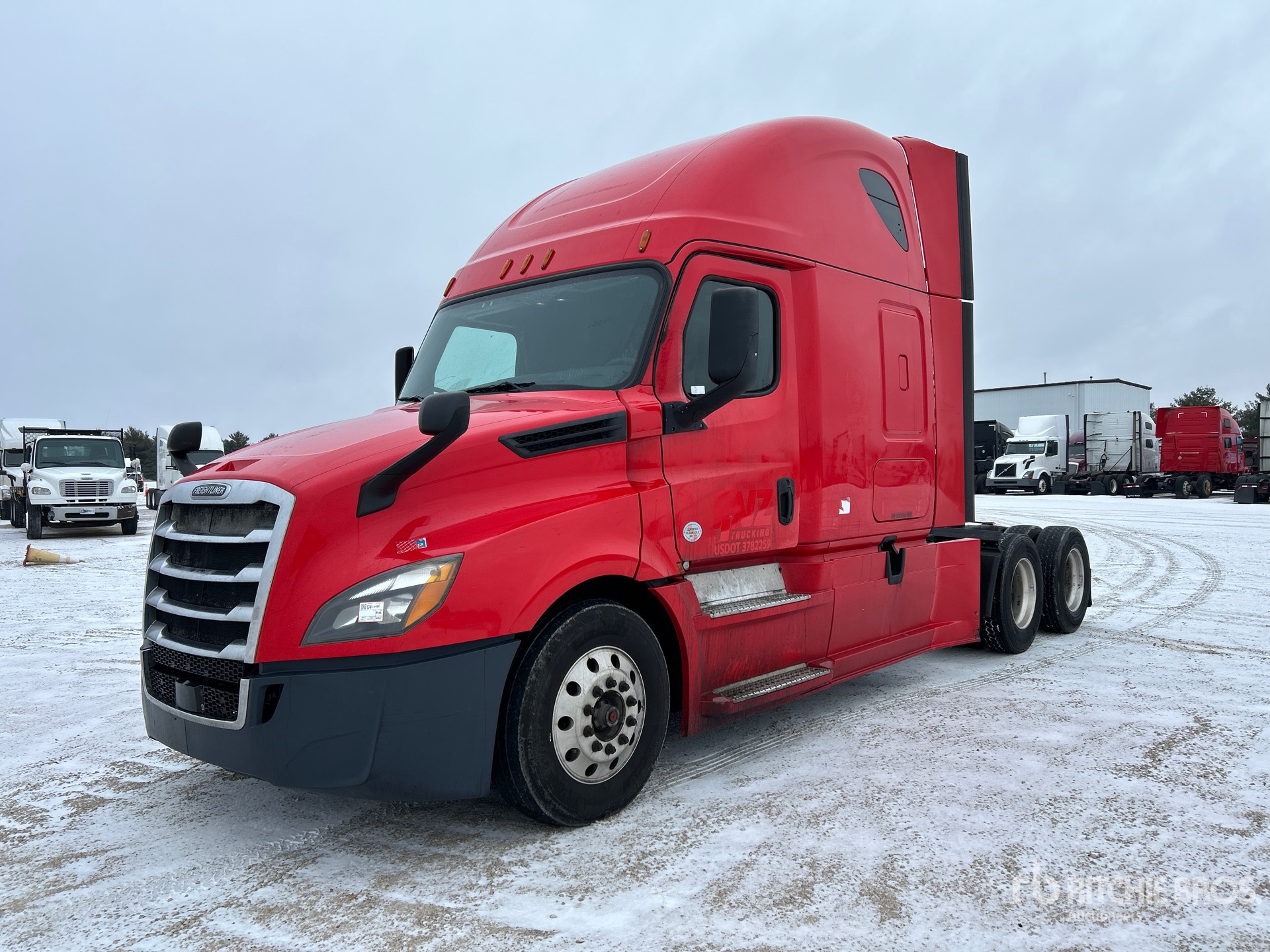 Detroit DD15 Engine, 2018 US EPA Label, 23427 Engine hrs, Detroit 12-Speed Automated Transmission, 12000 lb Front Axle, 40000 lb Rears, 52000 lb GVWR, Engine Brake, 58 in High Rise Sleeper Cab, Bunk Beds, Bergstorm Sleeper Air Conditioner, 231 in Wheelbase, Air Suspension, Aluminum Wheels, 295/75R22.5, Air Sliding 5th Wheel, Dual Fuel Tanks