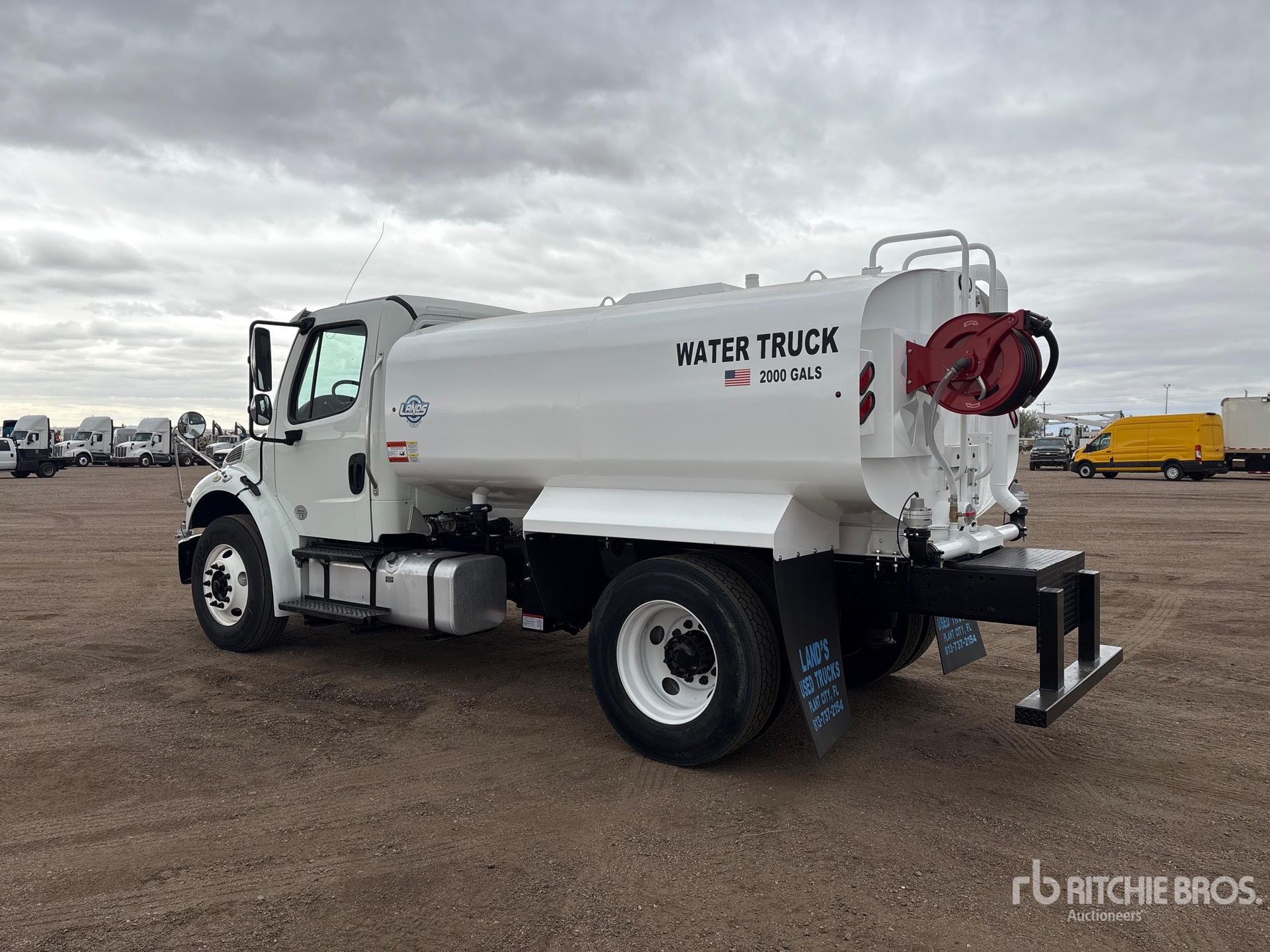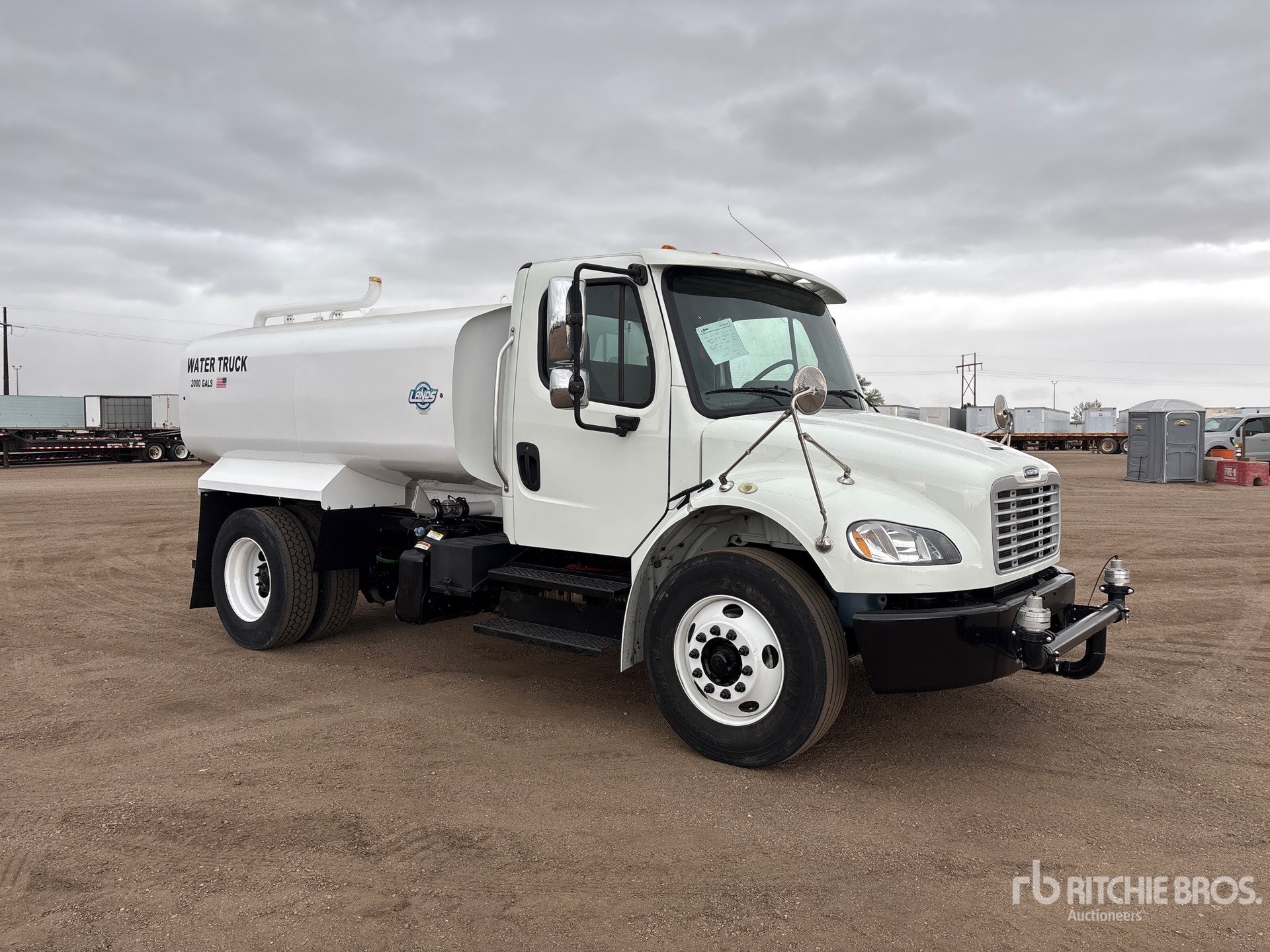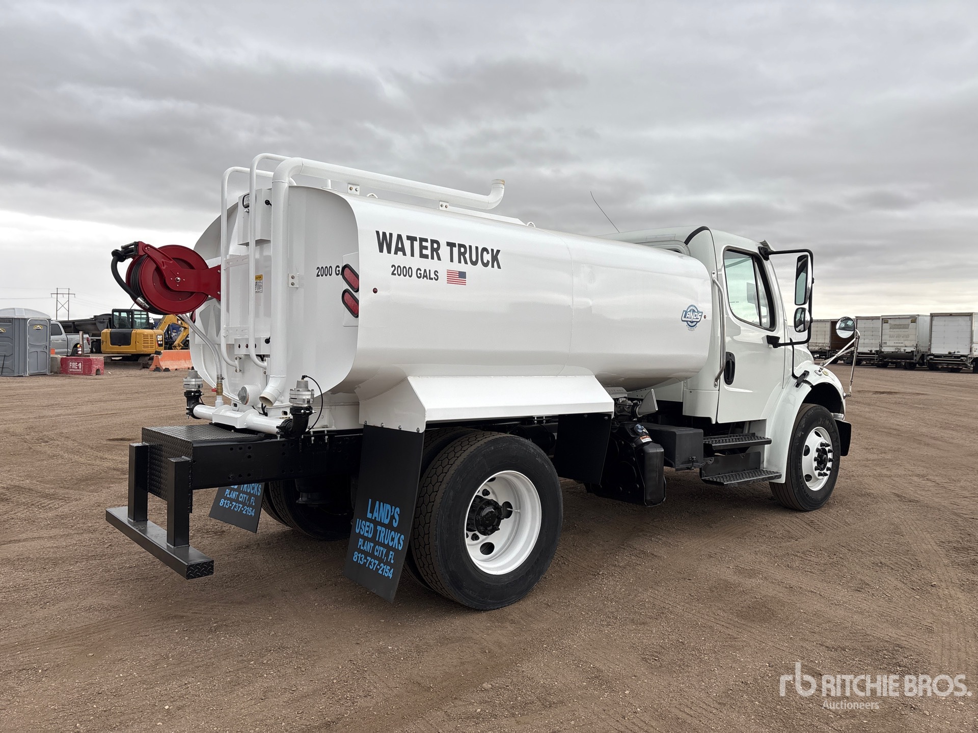 Cummins B6.7260 6 Cylinder 6.7 L Diesel 260 hp Engine, 2018 US EPA Label, Requires Diesel Exhaust Fluid, 5616.3 Engine hrs, 12000 lb Front Axle, 21000 lb Rears, 33000 lb GVWR, 295/75R22.5, Air Ride Suspension, 156 in Wheelbase, PTO, Land's Unused Powder Coated 2000 gal Steel Tank, PTO Driven Pump