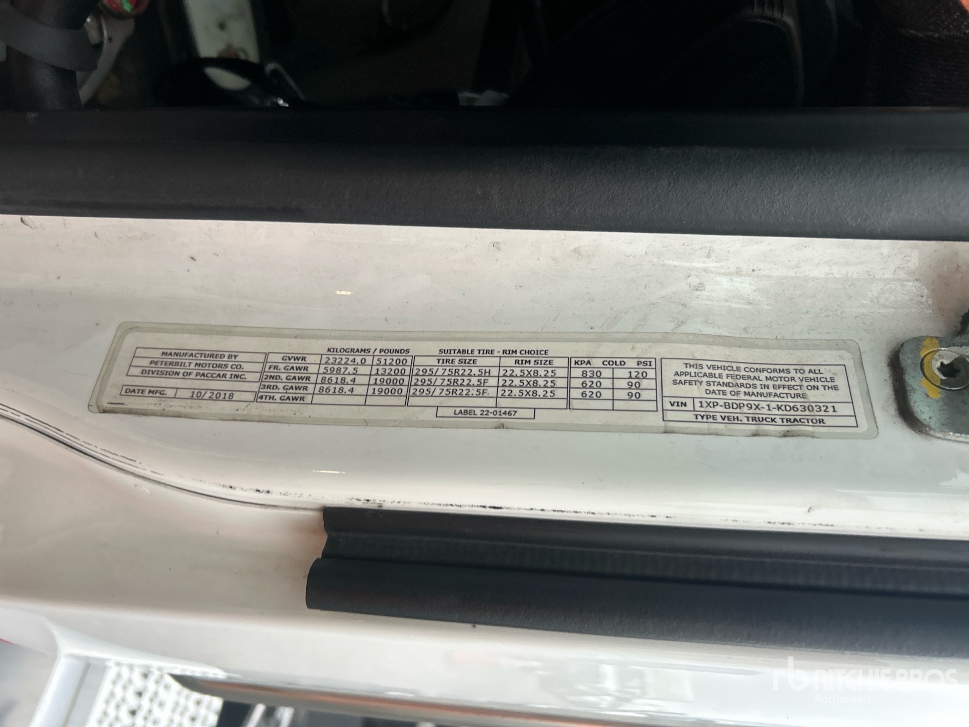 Located in Lane 31 Spot 22, Paccar MX-13 Engine, 2018 US EPA Label, 13200 lb Front Axle, 38000 lb Rears, 51200 lb GVWR, Differential Lock, 188 in Wheelbase, Air Suspension, Aluminum Wheels, 295/75R22.5, Air Sliding 5th Wheel, Dual Fuel Tanks