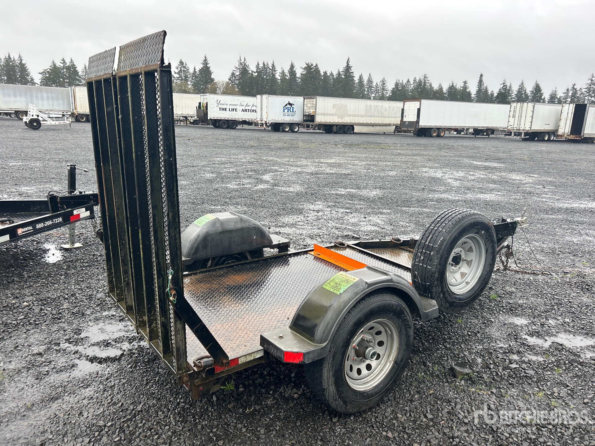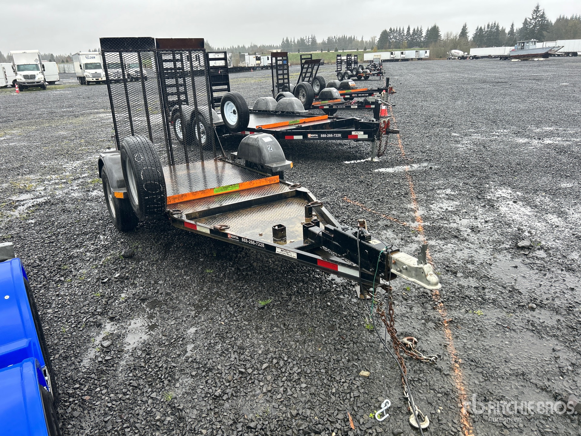Ball Hitch, Spring Suspension, Surge Brakes, 6 ft 10 in Main Deck, 48 in Usable Deck Width, Manual Ramps, Steel Decking, 225/75R15 Tires, 4400 lb GVWR