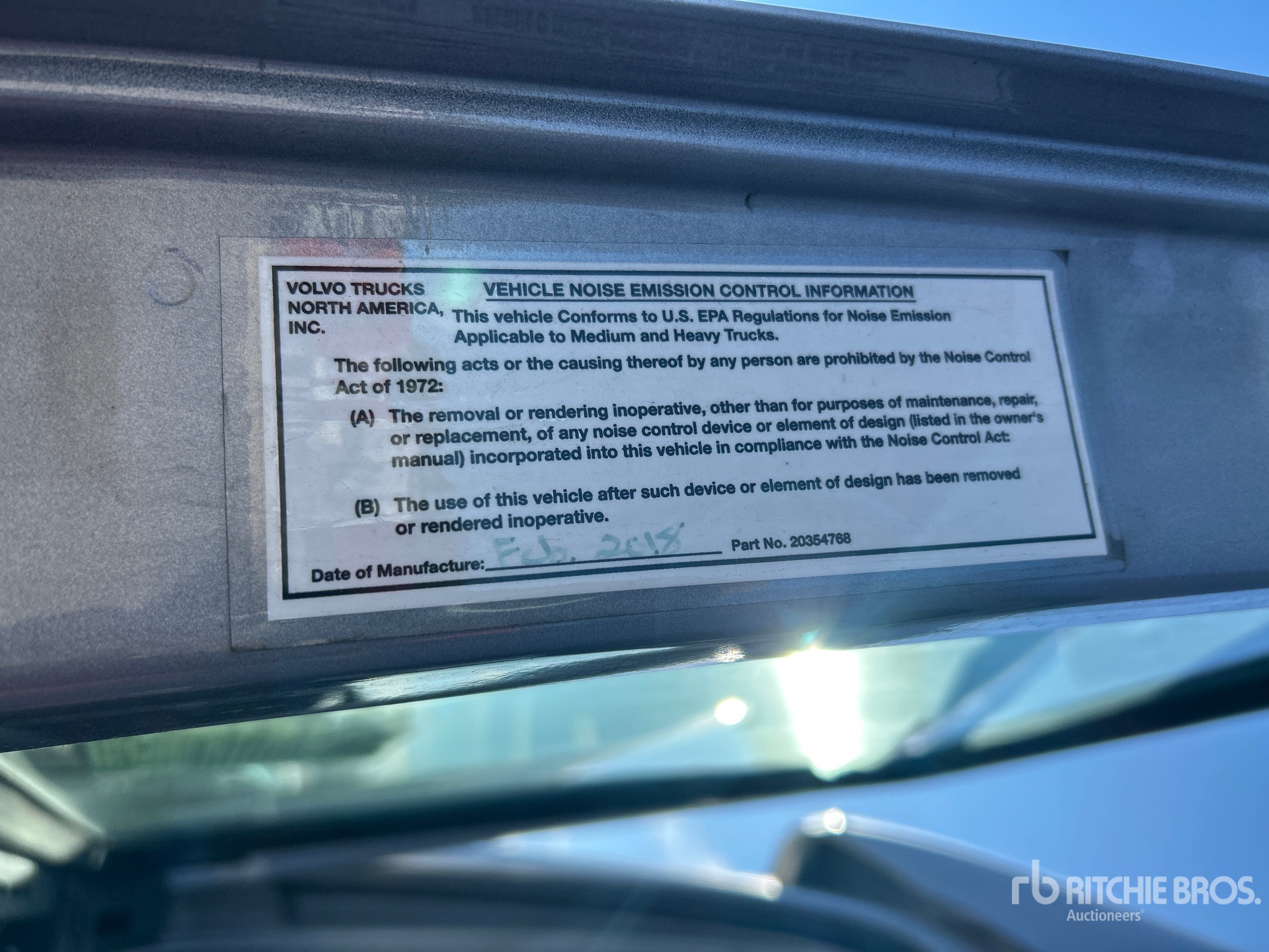 2019 US EPA Label, Volvo ATO2612F 12-Speed Automated Transmission, 13200 lb Front Axle, 38000 lb Rears, 51200 lb GVWR, Engine Brake, 70 in High Rise Sleeper Cab, 238 in Wheelbase, Air Suspension, Aluminum Wheels, 295/75R22.5 Front Tires, 295/75R22.5 Rear Tires, Air Sliding 5th Wheel, Dual Fuel Tanks