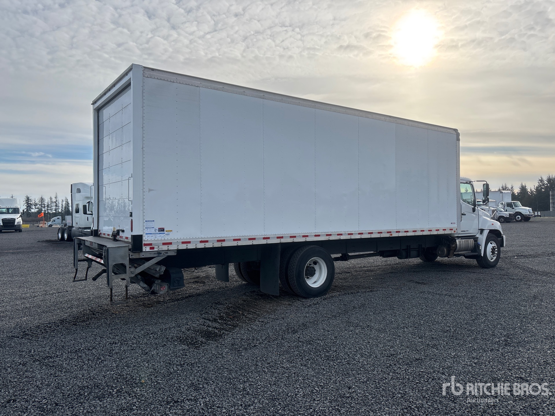 Located in Lane 32 Spot 5, Hino Motors J08E-WU 6 Cylinder 7.7 L Diesel 230 hp Engine, Requires Diesel Exhaust Fluid, Automatic Transmission, 10000 lb Front Axle, 19000 lb Rears, 25950 lb GVWR, 11R22.5, Air Ride Suspension, 272 in Wheelbase, Morgan 28 ft x 102 in Wide x 103 in High Body, Liftgate