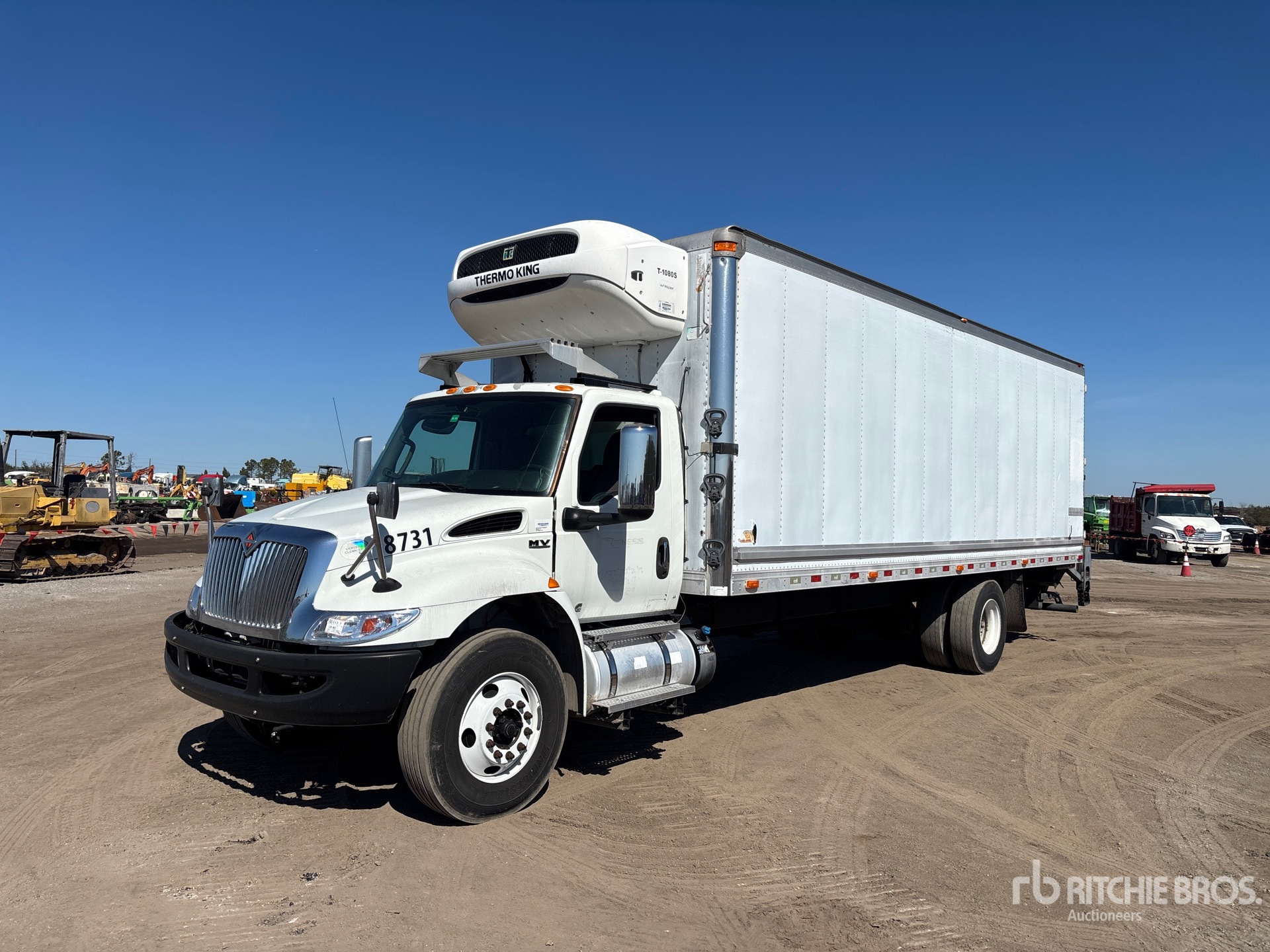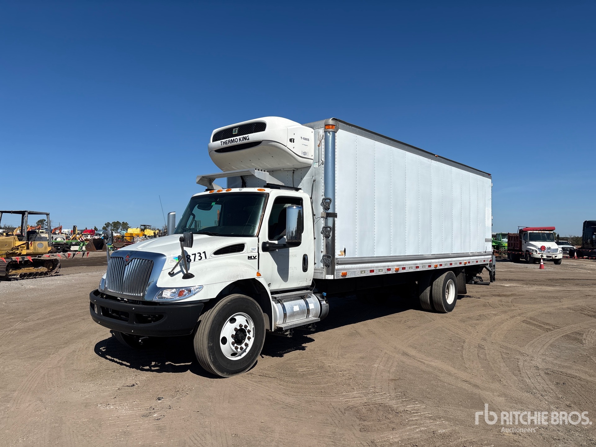 Located in Lane 90, Cummins B6.7 250 6 Cylinder 6.7 L Diesel 250 hp Engine, 2019 US EPA Label, CARB Compliant, Requires Diesel Exhaust Fluid, Positive Air Shutoff, 11623 Engine hrs, Exhaust Brake, Automatic Transmission, 12350 lb Front Axle, 21000 lb Rears, 33000 lb GVWR, Steel wheels, 11R22.5, Air Ride Suspension, 272 in Wheelbase, 2019 Thermo King T-1080S Reefer Unit, 13684 Reefer Total Hours:, 2-Zone, (1) Remote Evaporators, Kidron 26 ft x 102 in Wide x 96 in High Body, Liftgate