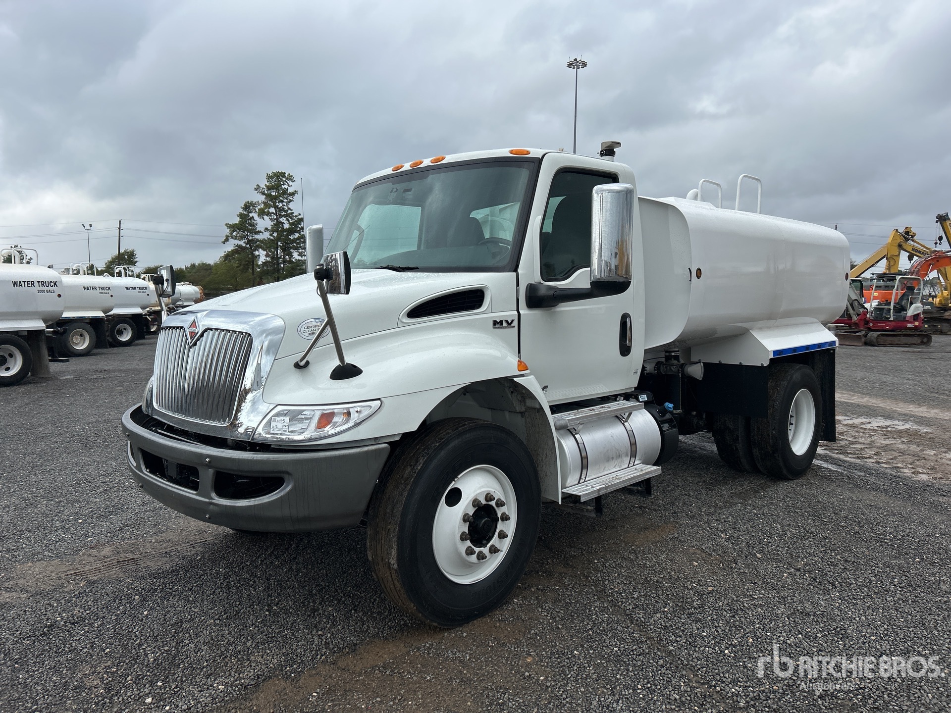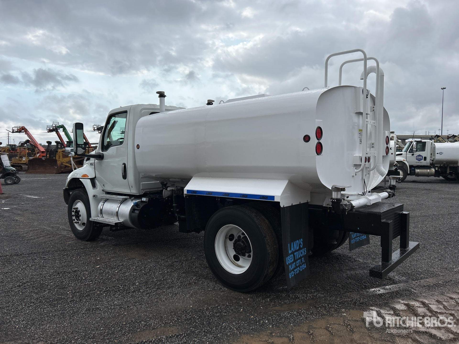 Cummins B6.7 6.7 L Diesel Engine, Requires Diesel Exhaust Fluid, 2393 Engine hrs, Exhaust Brake, Allison Automatic Transmission, 12350 lb Front Axle, 21000 lb Rears, 33000 lb GVWR, 11R22.5, Air Ride Suspension, 158 in Wheelbase, PTO, Lands 2500 gal Steel Tank, PTO Driven Pump, 6 ft 8 in, Spray Bar, Rear Spray, Side Spray