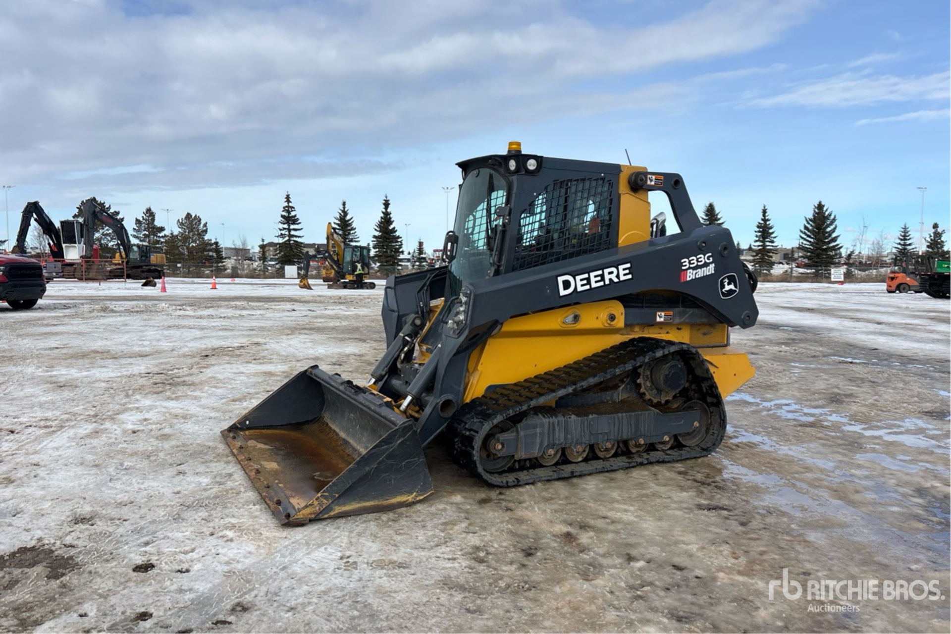 Enclosed Cab, Air Conditioner, Ride Control, Joystick Steering, Control Pattern Changer, Rear View Camera, 18 in Track Belts, Hydraulic Coupler, 82 in Bucket