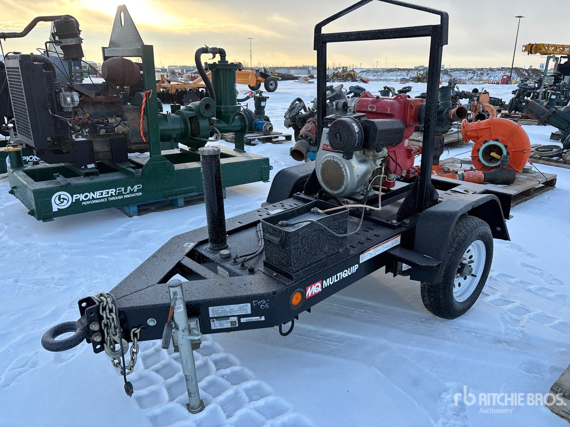 4 in Intake, 4 in Discharge, Water Pump, 2019 US EPA Label, Kubota OC95-EF02 1 Cylinder 7 kW 0.41 L Diesel Engine, Lunette Ring Carrier Trailer