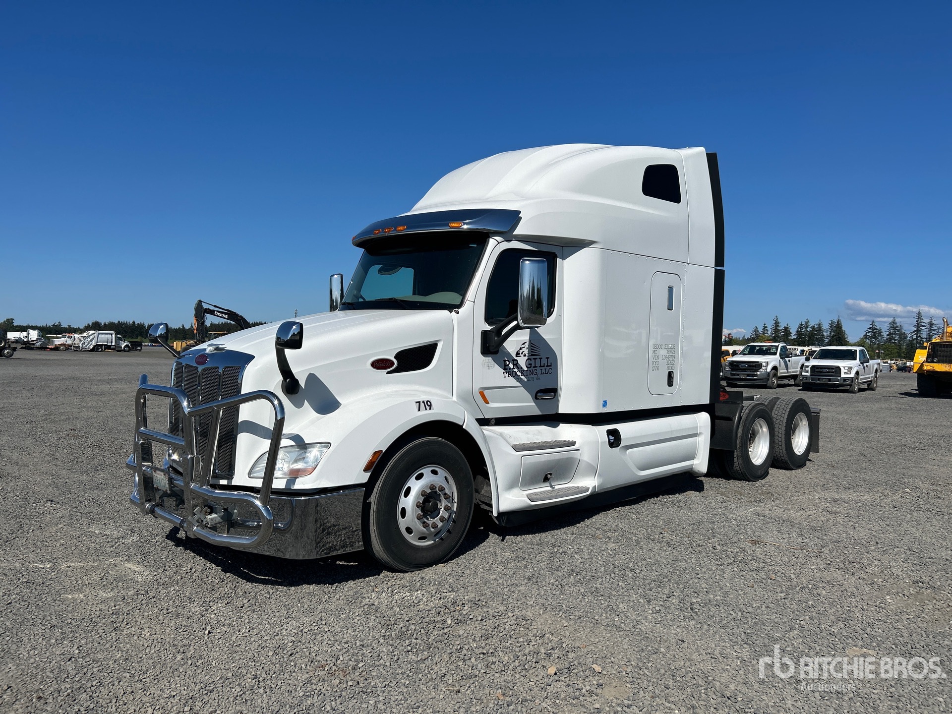 Located in Lane 13 Spot 4, Paccar MX-13 455 hp Engine, 2019 US EPA Label, Automatic Transmission, 12000 lb Front Axle, 40000 lb Rears, 52000 lb GVWR, Engine Brake, 70 in High Rise Sleeper Cab, Bunk Beds, 242 in Wheelbase, Air Suspension, Aluminum Wheels, 295/75R22.5, Air Sliding 5th Wheel, Dual Fuel Tanks