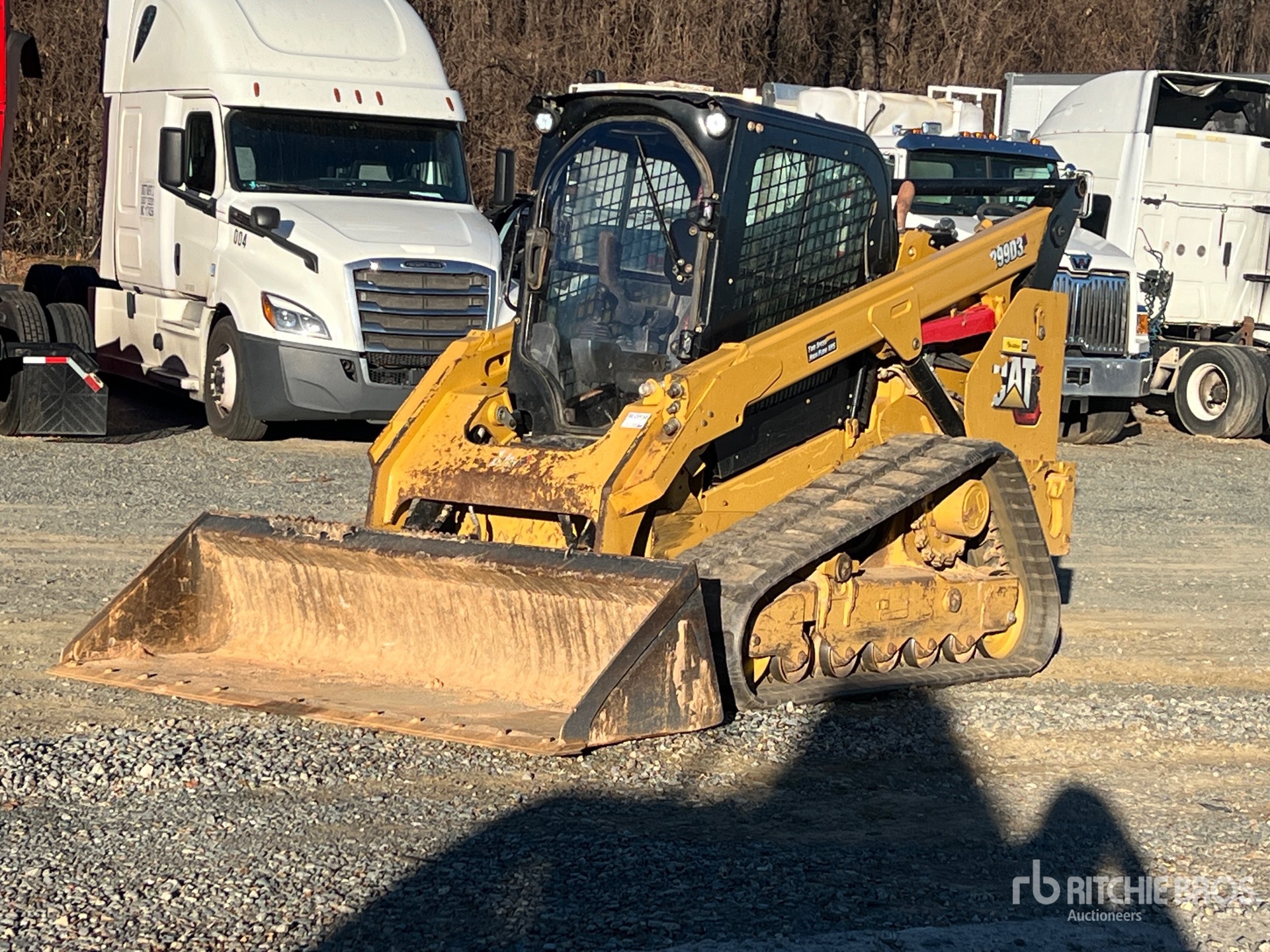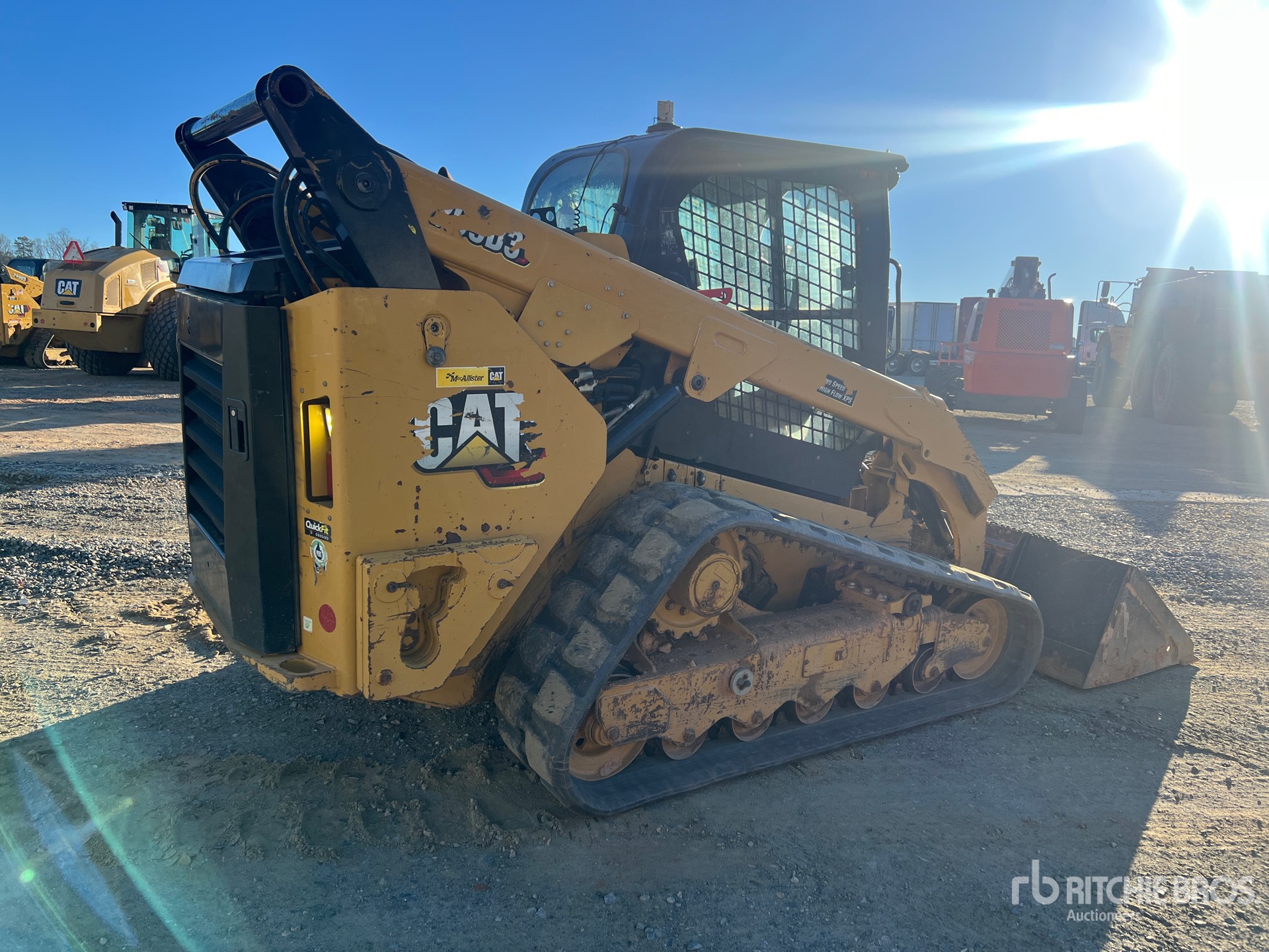 Enclosed Cab, Joystick Steering, Requires Diesel Exhaust Fluid, 17 in Track Belts, Hydraulic Coupler, 85 in Bucket, Counterweight Kit