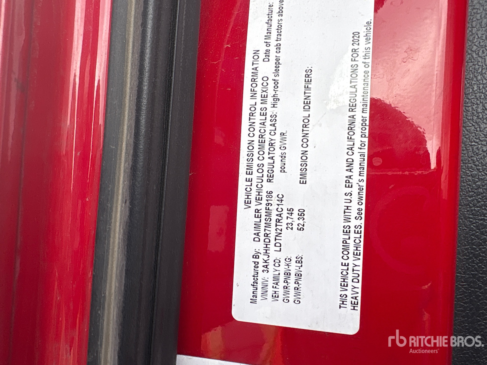 Detroit DD15 455 hp Engine, 2020 US EPA Label, Detroit DT12-1750-DH1 12-Speed Automated Transmission, 12350 lb Front Axle, 40000 lb Rears, 52350 lb GVWR, Engine Brake, 70 in High Rise Sleeper Cab, Bunk Beds, Bunk Heater, 227 in Wheelbase, Air Suspension, Aluminum Outer Wheels, 295/75R22.5, Air Sliding 5th Wheel, Dual Fuel Tanks