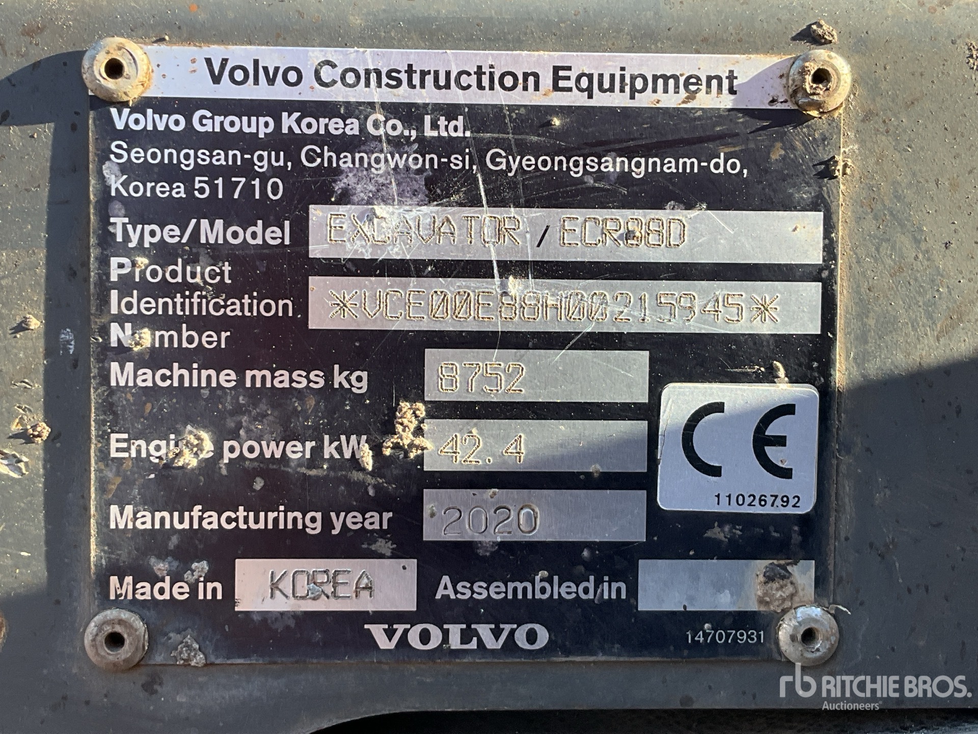 2020 Volvo ECR88D Excavadora de Cadenas