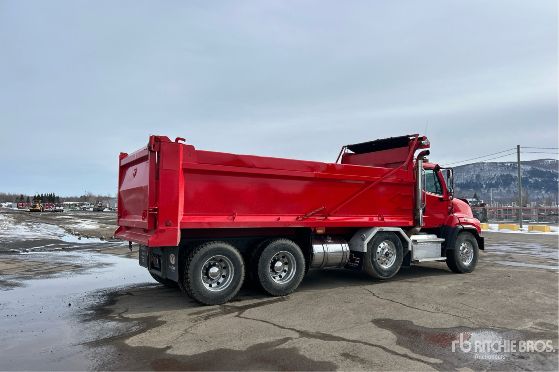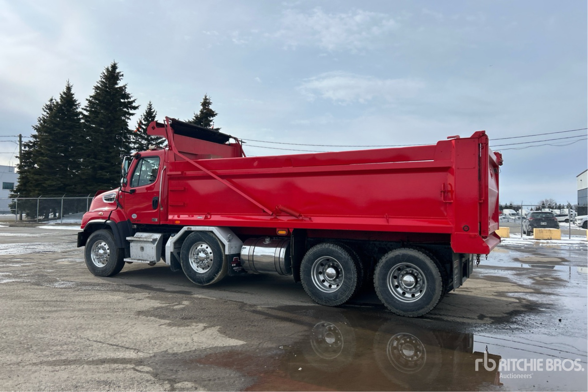 Detroit DD13 6 Cylinder 12.8 L Diesel 470 hp Engine, 2021 US EPA Label, Requires Diesel Exhaust Fluid, 6597 Engine hrs, Engine Brake, Allison 4500 Automatic Transmission, Differential Lock, 15421 kg Front Axle, 20864 kg Rears, 4.56:1 Axle Ratio, 32000 kg GVWR, Air Ride Cab, Aluminum Wheels, 315/80R22.5 Front Tires, 11R22.5 Rear Tires, Dual Steering Boxes, Airliner Air Ride Suspension, 240 in Wheelbase, Everest 19 ft 6 in Long x 3 ft 6 in High Steel Body, Heated Box, Electric Roll Tarp, 2-Way Tailgate