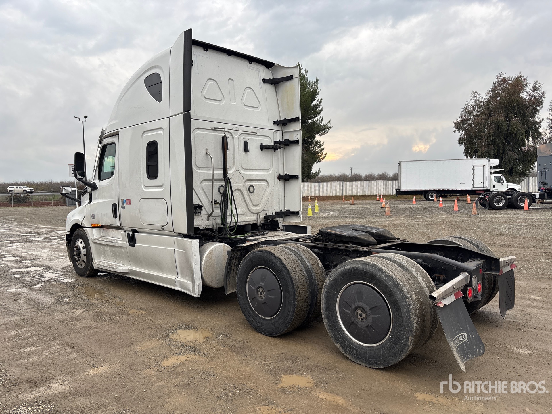 Detroit DD15 Engine, 2021 US EPA Label, DT12-1750-OHE 12-Speed Automated Transmission, 13300 lb Front Axle, 40000 lb Rears, 53300 lb GVWR, Engine Brake, 72 in High Rise Sleeper Cab, Bunk Beds, 235 in Wheelbase, Air Suspension, Aluminum Wheels, 295/75R22.5, Air Sliding 5th Wheel, Dual Fuel Tanks