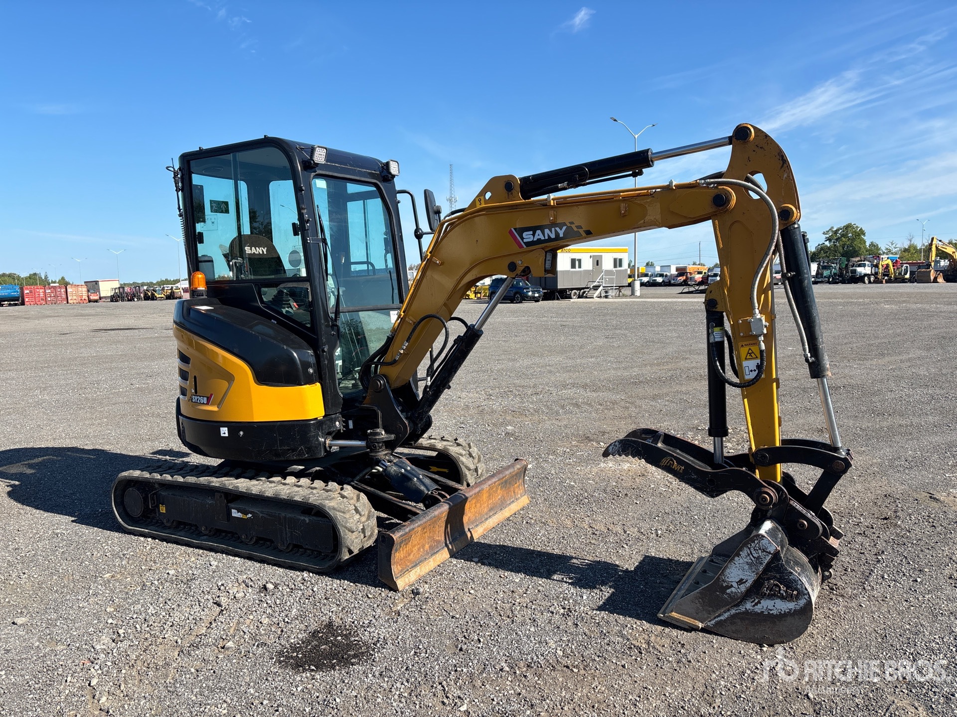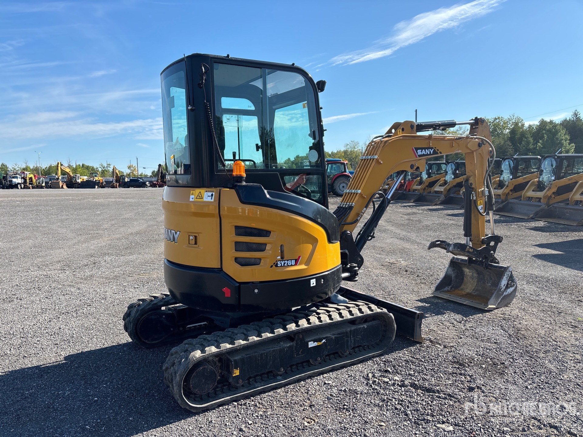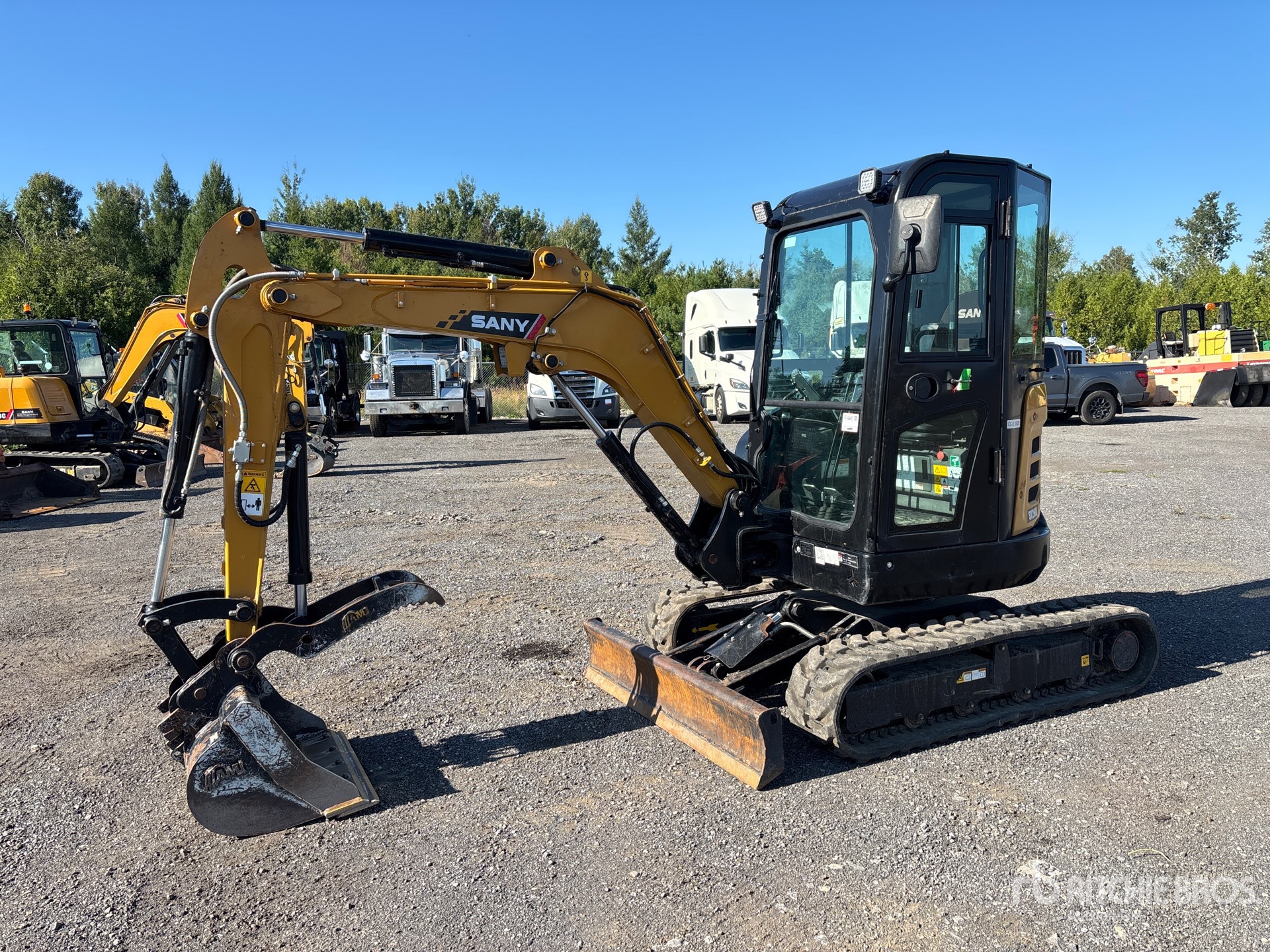 Enclosed Cab, Swing Boom, 3 ft 8 in Stick, Backfill Blade, 12 in Rubber Tracks, Manual Quick Coupler, 24 in Cleanup Bucket, Hydraulic Thumb