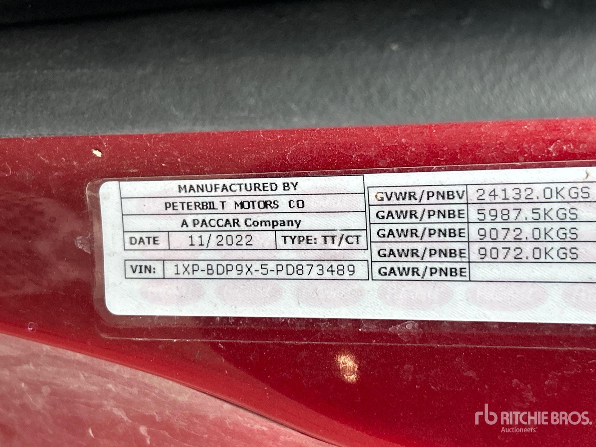 Paccar MX-13 456 hp Engine, 2022 US EPA Label, 7722 Engine hrs, Automated Transmission, 13200 lb Front Axle, 40000 lb Rears, 53200 lb GVWR, Engine Brake, Differential Lock, 70 in High Rise Sleeper Cab, Bunk Beds, 238 in Wheelbase, Air Suspension, Aluminum Wheels, 11R22.5, Air Sliding 5th Wheel, Dual Fuel Tanks