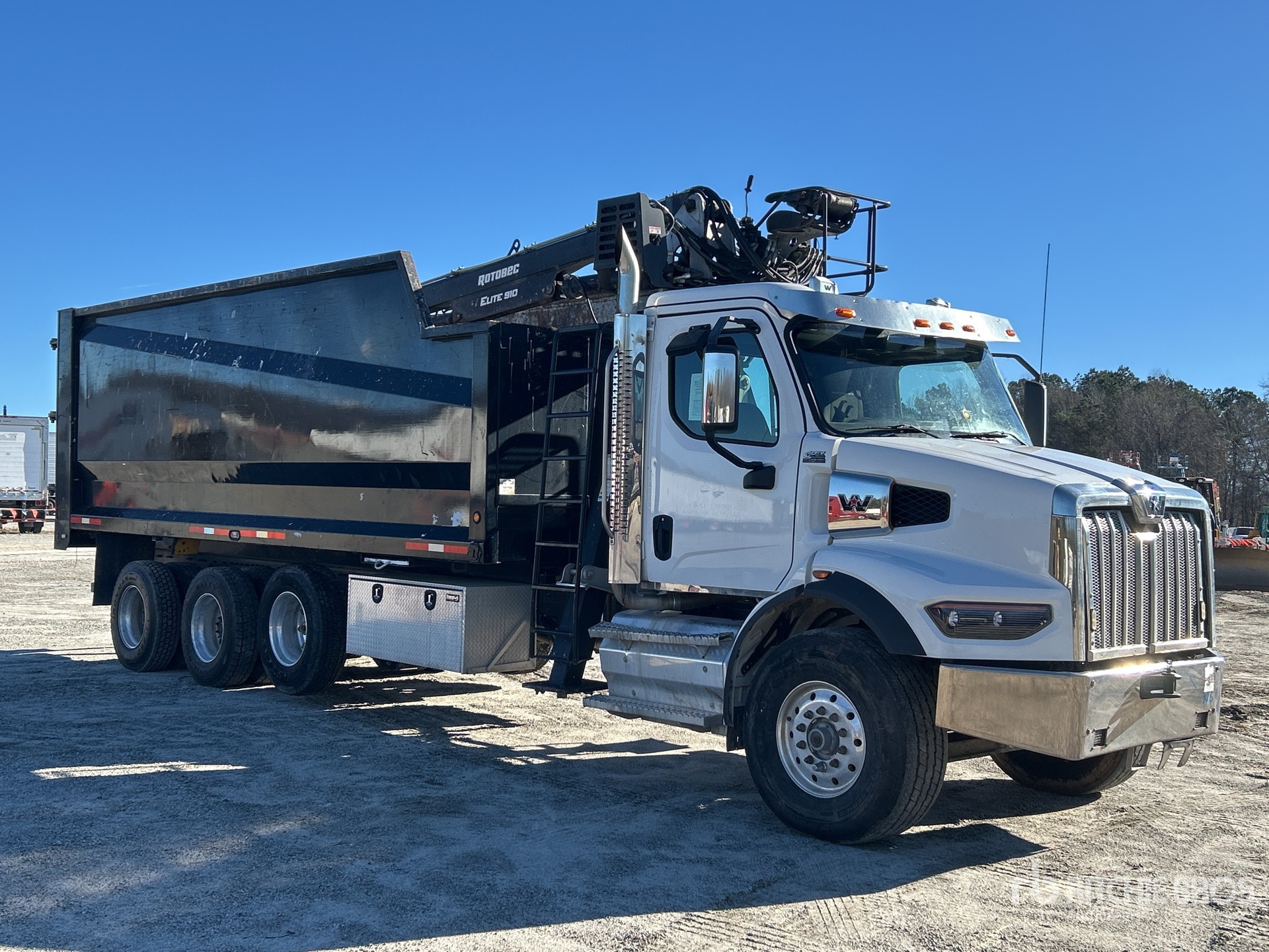 Cummins X12 6 Cylinder Diesel 455 hp Engine, 2023 US EPA Label, Requires Diesel Exhaust Fluid, 3866.15 Engine hrs, Engine Brake, Allison 4500 Automatic Transmission, 20000 lb Front Axle, 46000 lb Rears, Meritor RT-46-160 Drive Axles, 3.42:1 Axle Ratio, 66000 lb GVWR, Air Ride Cab, Aluminum Wheels, 425/65R22.5 Front Tires, 11R22.5 Rear Tires, Air Lift Pusher Axle, Dual Steering Boxes, Double Frame, Chalmers Rubber over Walking Beam Suspension, 302 in Wheelbase, PTO, A-Outriggers, 24 ft x 102 in Bed