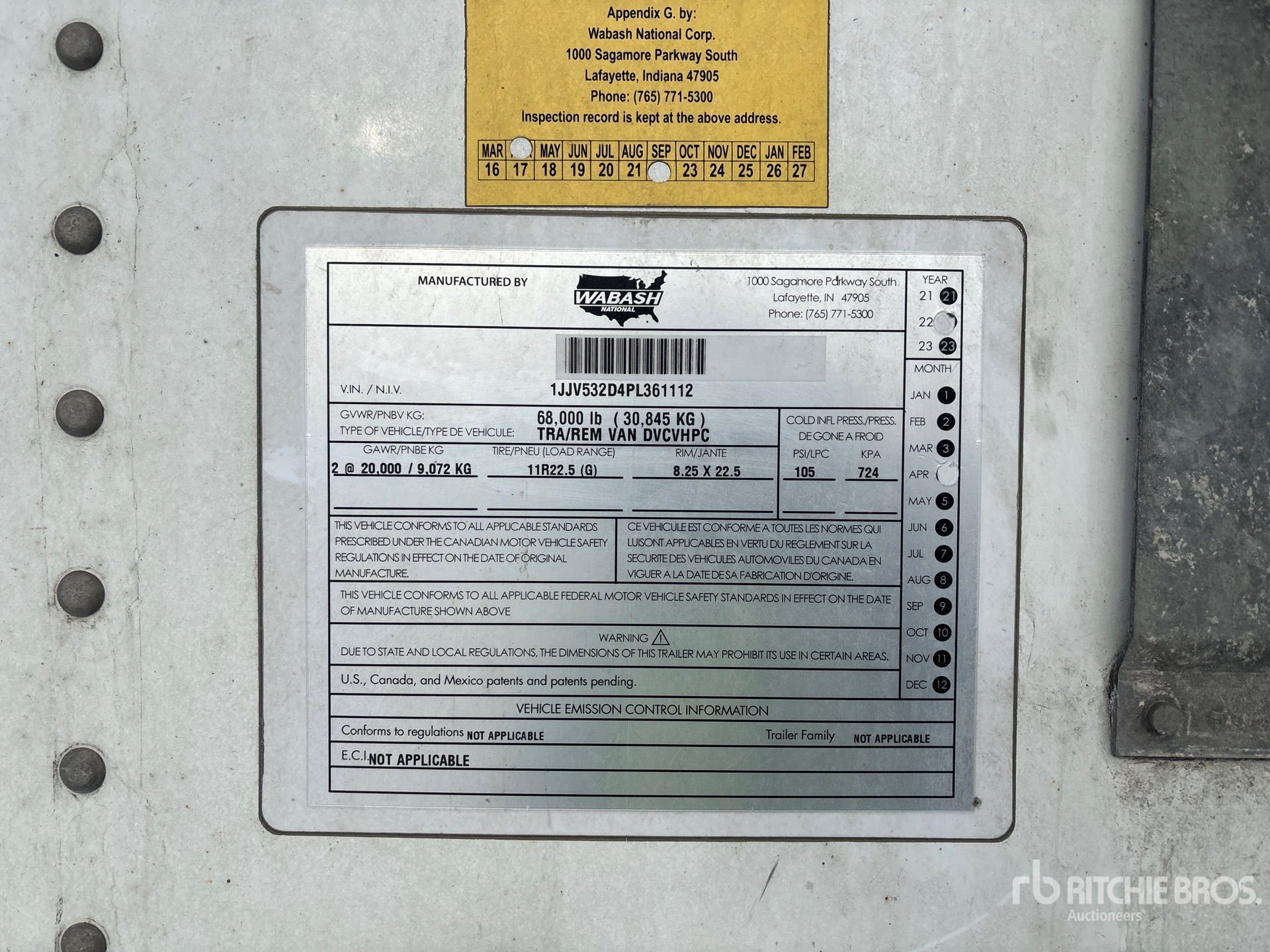 Air Ride Sliding Suspension, Side Skirts, Hardwood Floor, Swing Door, 11R22.5 Tires, 68000 lb GVWR