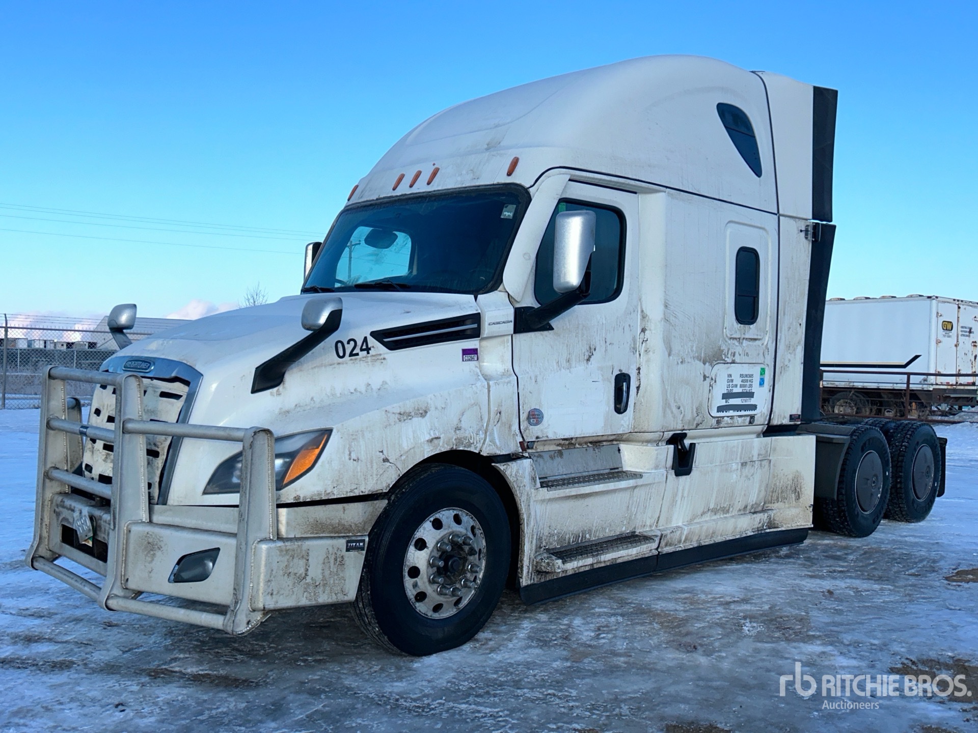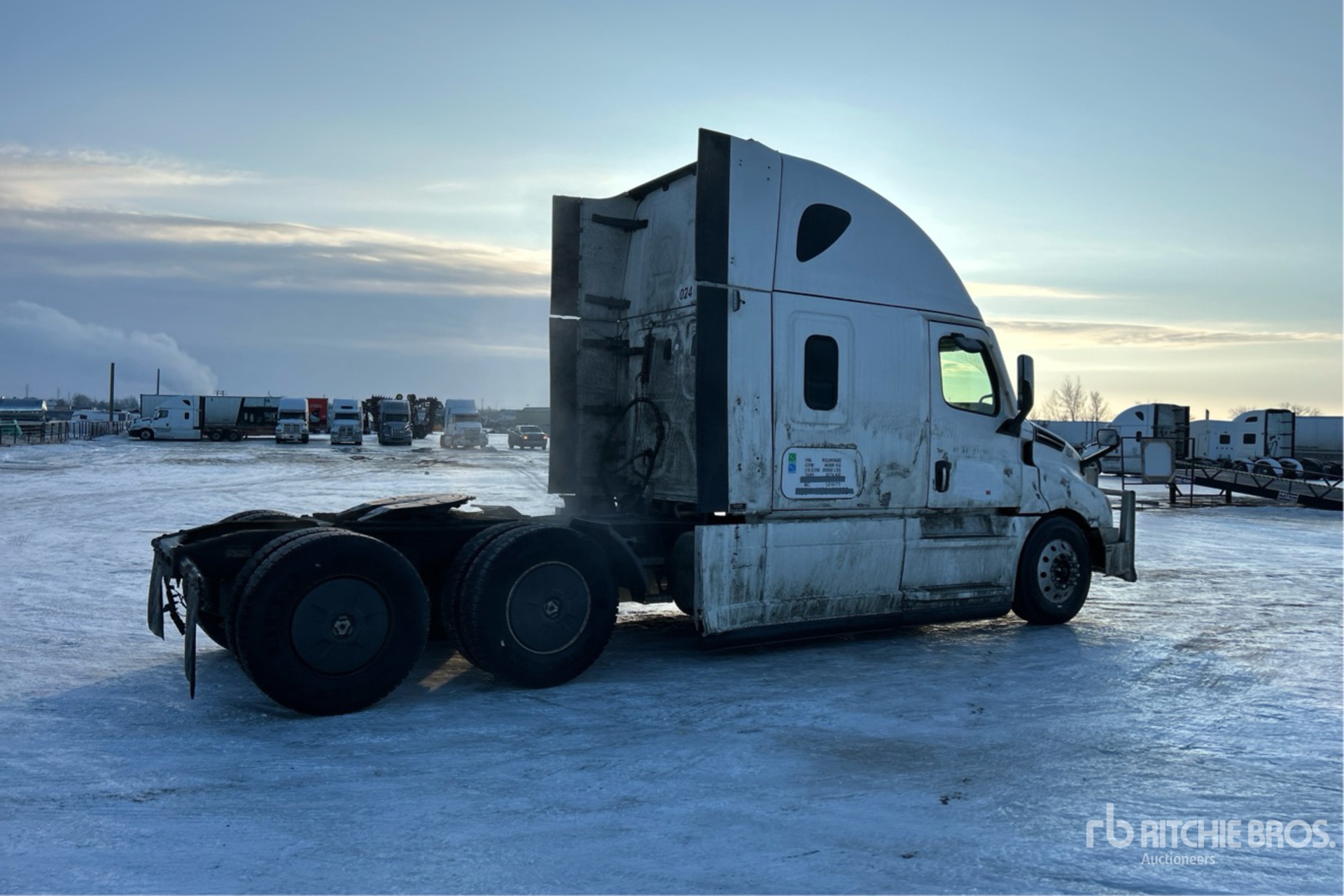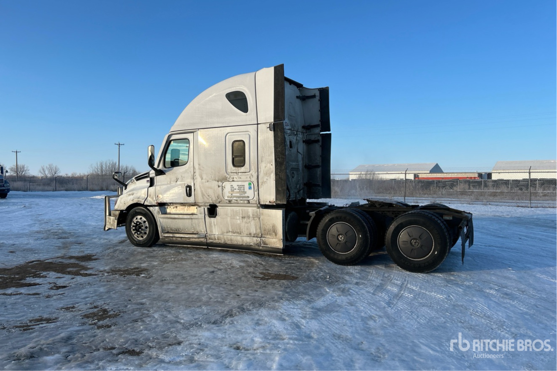 Detroit DD15 505 hp Engine, 2023 US EPA Label, Detroit DT12-1750-OH1 12-Speed Automated Transmission, 13220 lb Front Axle, 40000 lb Rears, 53220 lb GVWR, Engine Brake, Double Differential Locks, 60 in High Rise Sleeper Cab, Bunk Beds, Bunk Heater, 231 in Wheelbase, Air Suspension, Aluminum Wheels, 11R22.5, Air Sliding 5th Wheel, Dual Fuel Tanks