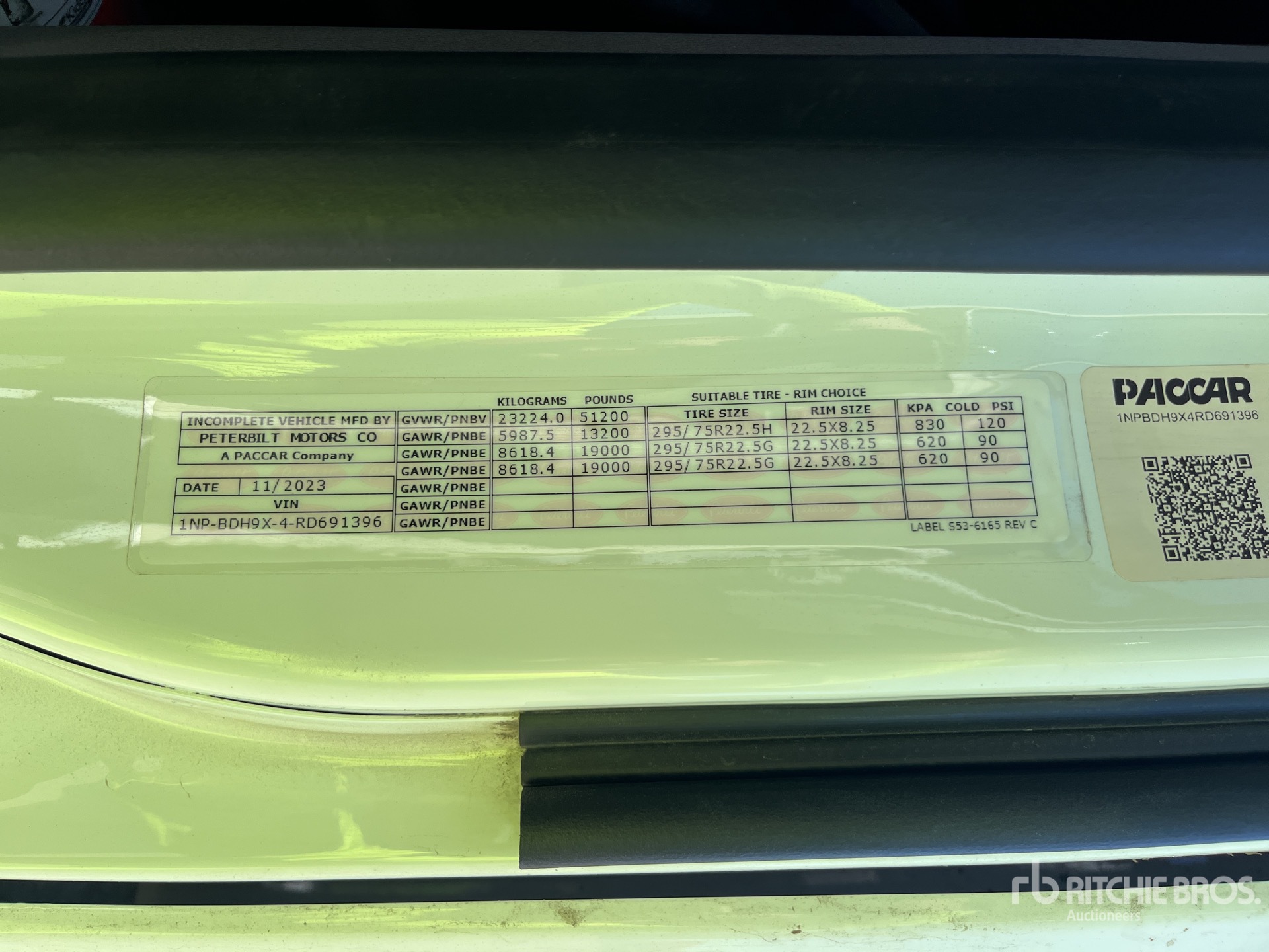 Cummins ISX12 400 hp Engine, 2023 US EPA Label, 1081 Engine hrs, 13200 lb Front Axle, 38000 lb Rears, 51200 lb GVWR, Engine Brake, 63 in High Rise Sleeper Cab, 245 in Wheelbase, Air Suspension, 295/75R22.5, Air Sliding 5th Wheel