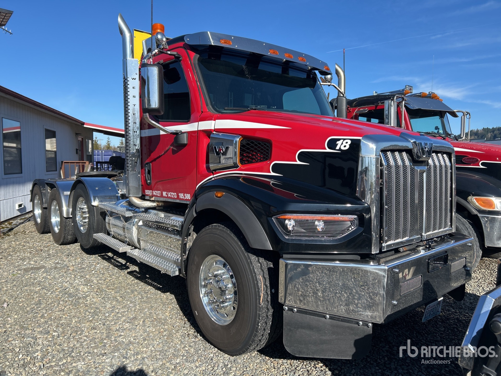 Detroit DD16 560 hp Engine, Allison 4700RDS 7-Speed Automatic Transmission, Eaton Fuller AT-1202 2-Speed Auxiliary Transmission, 20000 lb Front Axle, Meritor RT-46-164P Drive Axles, 4.89:1 Axle Ratio, 46000 lb Rears, Engine Brake, Double Differential Locks, Air Suspension, Air Lift Pusher Axle, Aluminum Wheels, 425/65R22.5 Front Tires, 11R24.5 Rear Tires, Dual Steering Boxes, Wet Kit, Air Sliding 5th Wheel, Dual Fuel Tanks, Headache Rack
