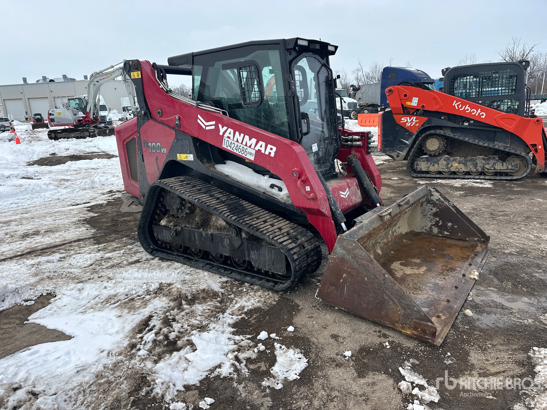 Enclosed Cab, Air Conditioner, Creep Mode, Joystick Steering, Control Pattern Changer, Rear View Camera, Requires Diesel Exhaust Fluid, 18 in Track Belts, 14 Pin Electric Kit, Hydraulic Coupler, 80 in Bucket