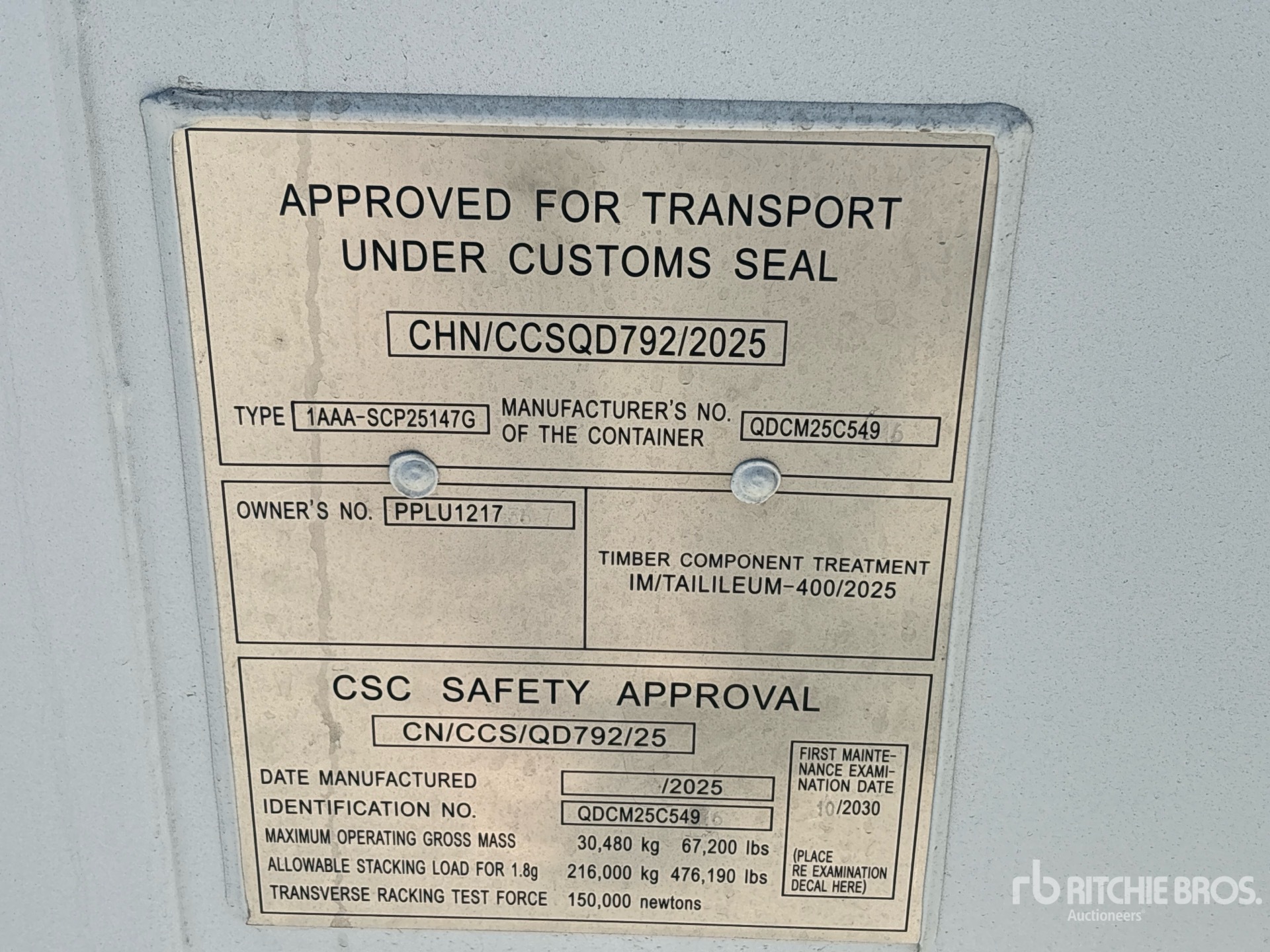 Un empleado cualificado de Ritchie Bros. ha recopilado información detallada del equipo y realizado las pruebas de funcionamiento de los componentes principales de este activo. Tú o tu representante también podéis inspeccionar cualquier artículo in situ durante los días de inspección de equipos indicados.