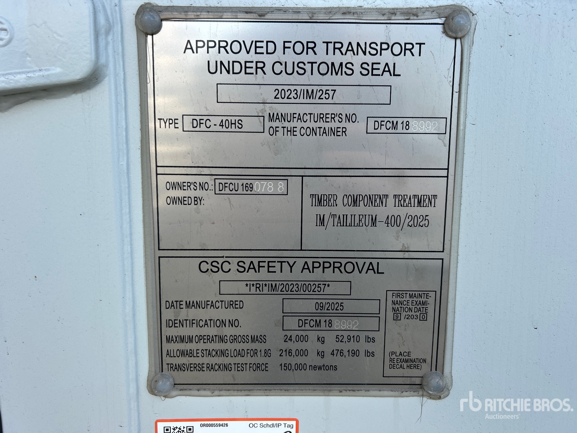 Un empleado cualificado de Ritchie Bros. ha recopilado información detallada del equipo y realizado las pruebas de funcionamiento de los componentes principales de este activo. Tú o tu representante también podéis inspeccionar cualquier artículo in situ durante los días de inspección de equipos indicados.
