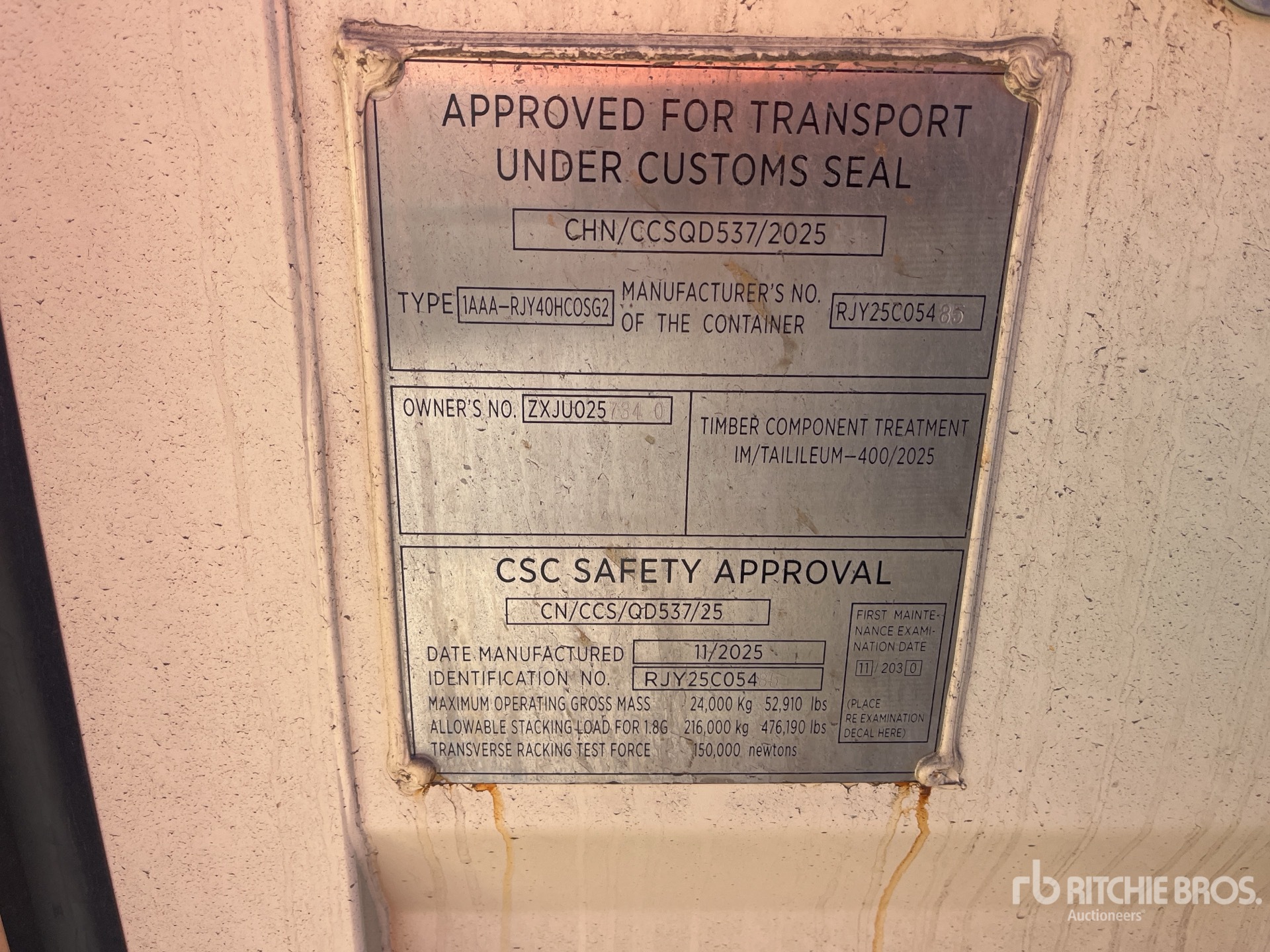 Un empleado cualificado de Ritchie Bros. ha recopilado información detallada del equipo y realizado las pruebas de funcionamiento de los componentes principales de este activo. Tú o tu representante también podéis inspeccionar cualquier artículo in situ durante los días de inspección de equipos indicados.
